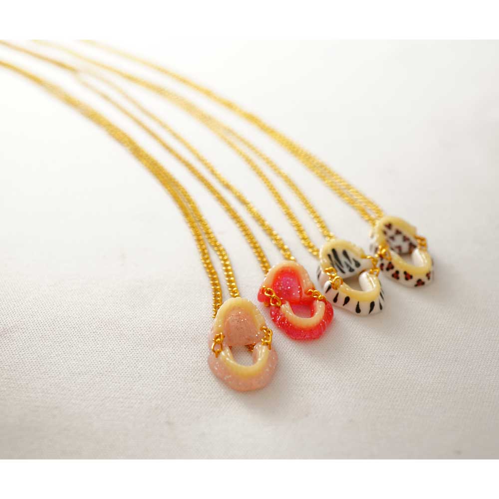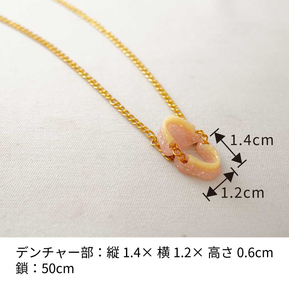 ●フィリピン製●材質/デンチャー部:アクリル 鎖:鉄(金メッキ)●サイズ/デンチャー部:縦1.4×横1.2×高さ0.6cm、鎖:50cm