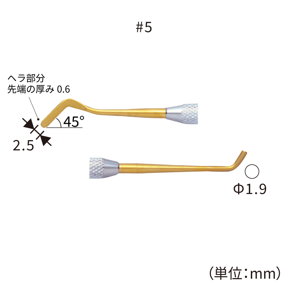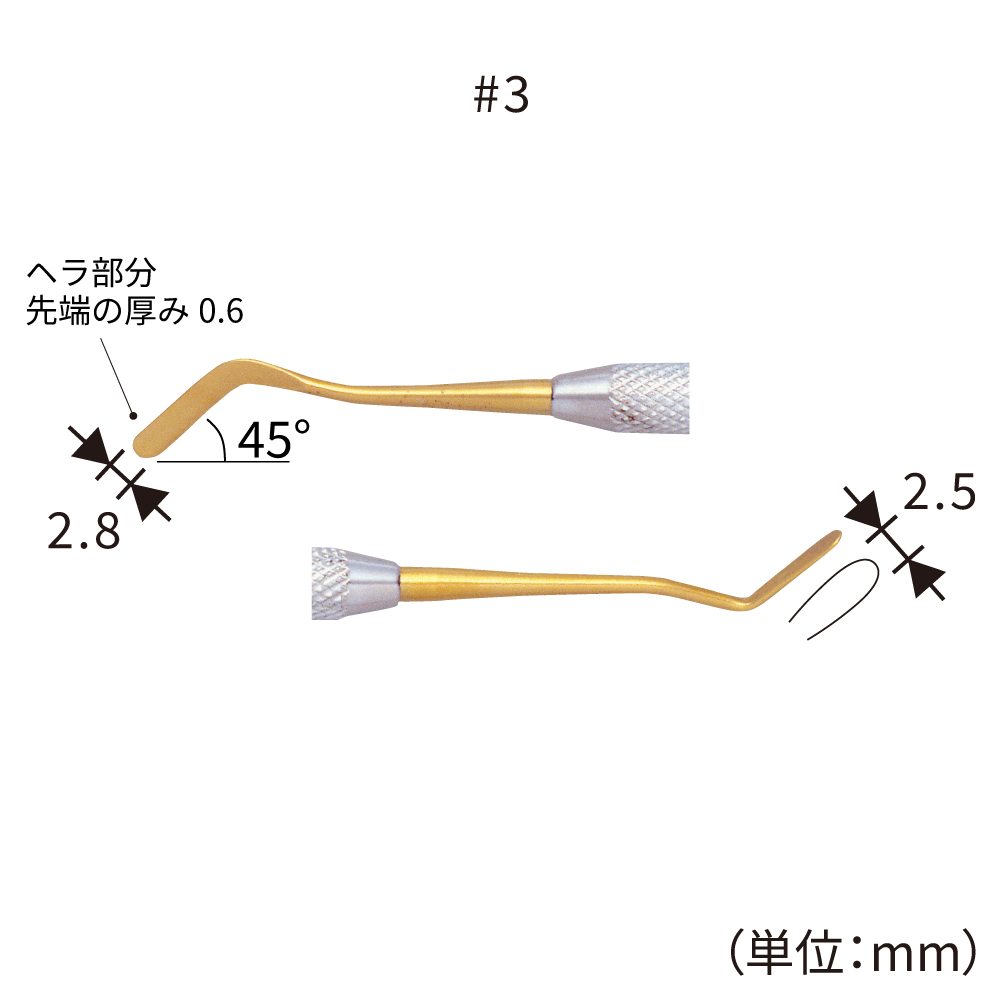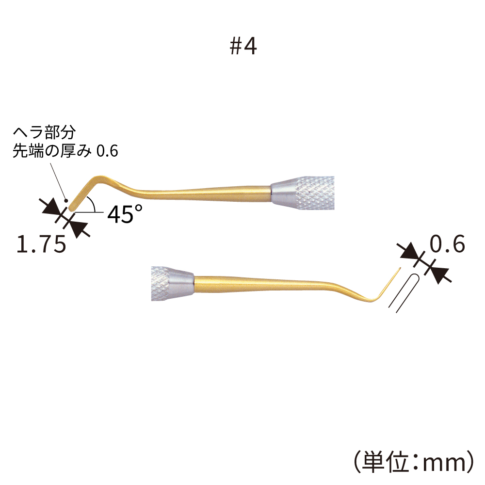 先端部分の金色はチタンニッケルコーティングの色です。