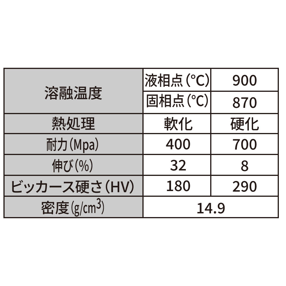美しい黄金色を保ち、金属床からクラウンまでさまざまな用途に使用できる、パラジウムフリーの白金加金合金です。