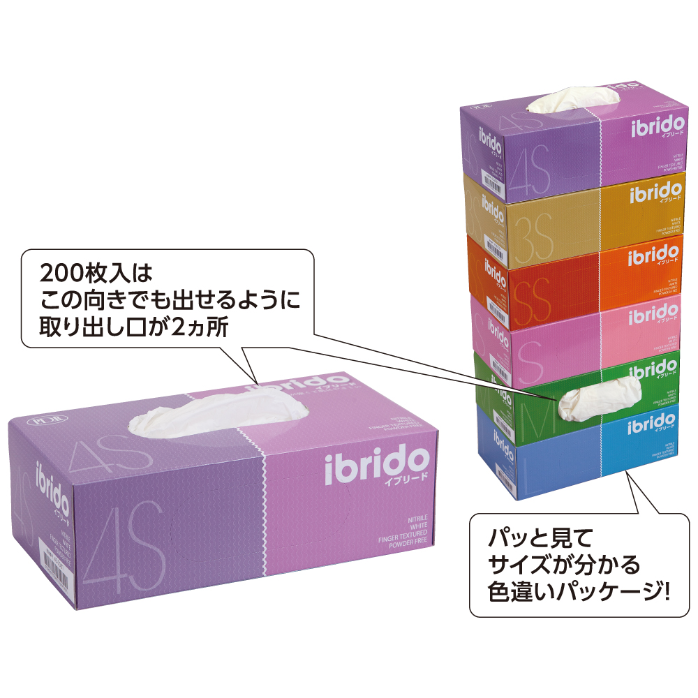 ラテックスフリーのゴム手袋なので、ラテックスアレルギーのリスクがありません。ラテックスグローブに比べ、突き刺し強度に大変優れています。薬液にも強いです。ibridoイブリードはイタリア語でハイブリッドという意味です。