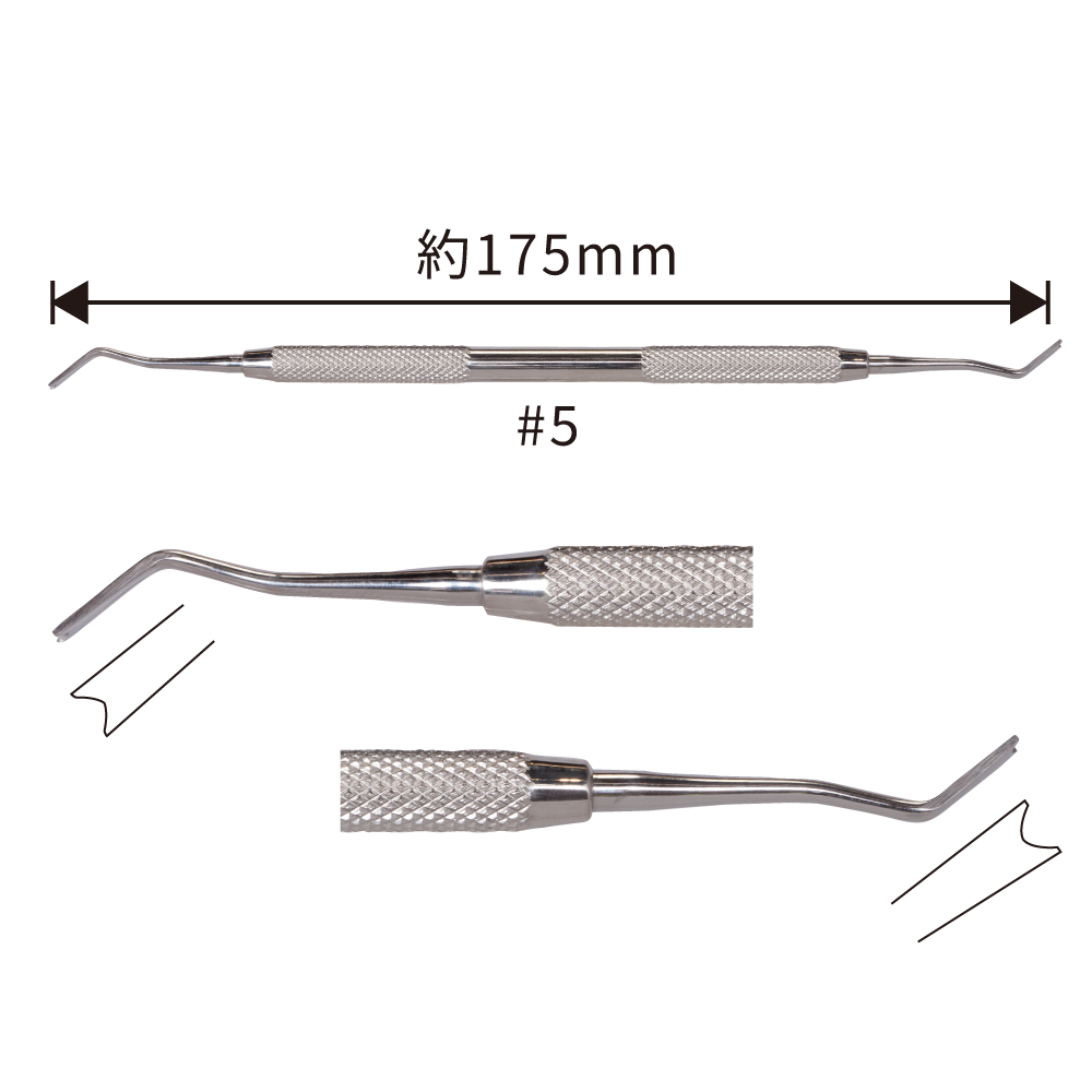 ●パキスタン製●材質/ステンレススチール●全長/#1、#2、#3:約170mm #4、#5:約175mm※一般的名称:歯科用ワックス形成器 届出番号:23B2X10036000252