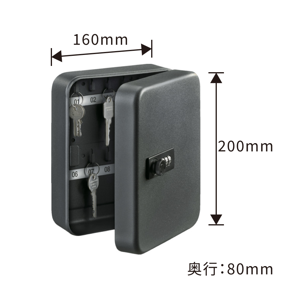 ダイヤル錠式。お好みの数字3桁の暗証番号を設定できます。オフィスや事務所などの鍵を集中管理できます。