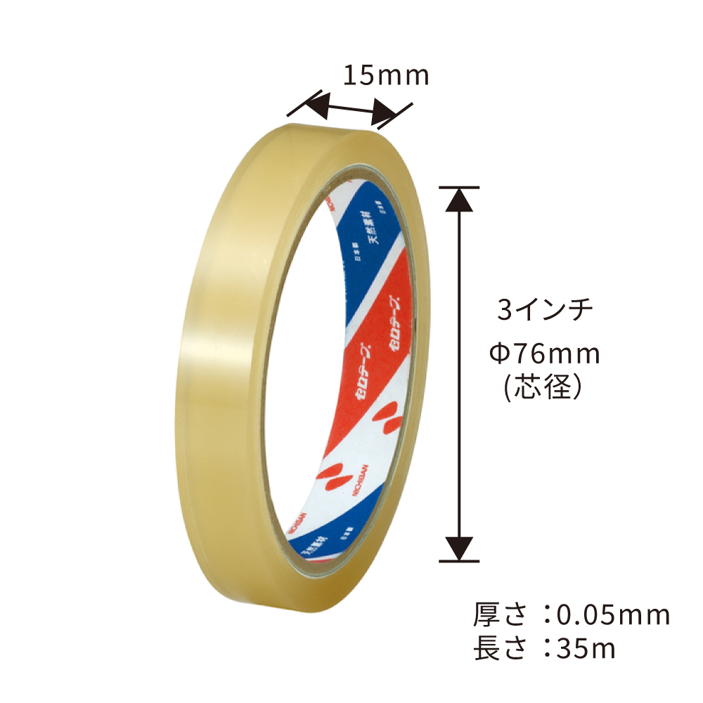 ●材質/基材:セロハン 粘着剤:ゴム系●粘着力/4.73N/10mm●引張強度/48.5N/10mmJIS適合 JIS-Z-1522