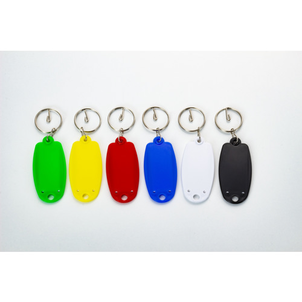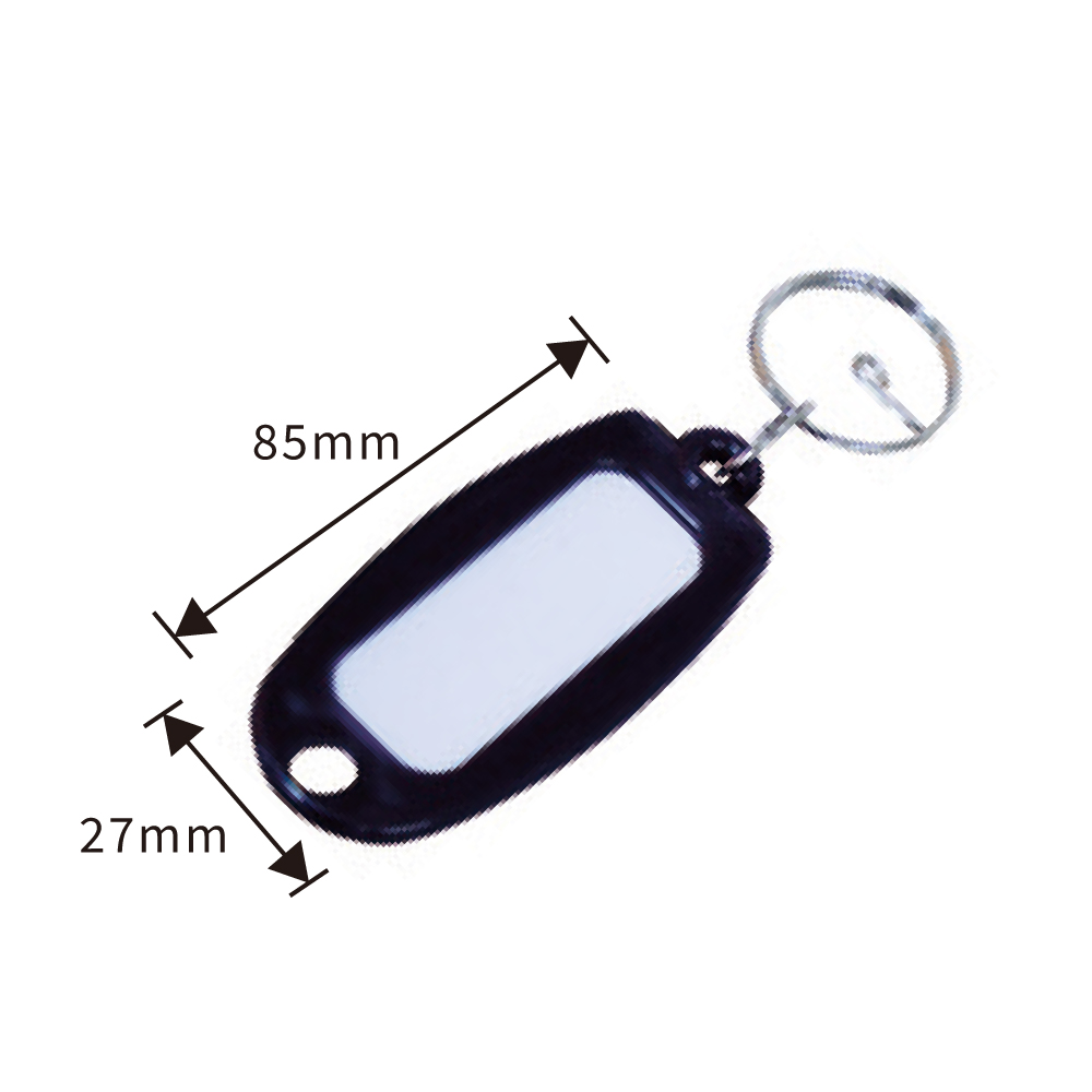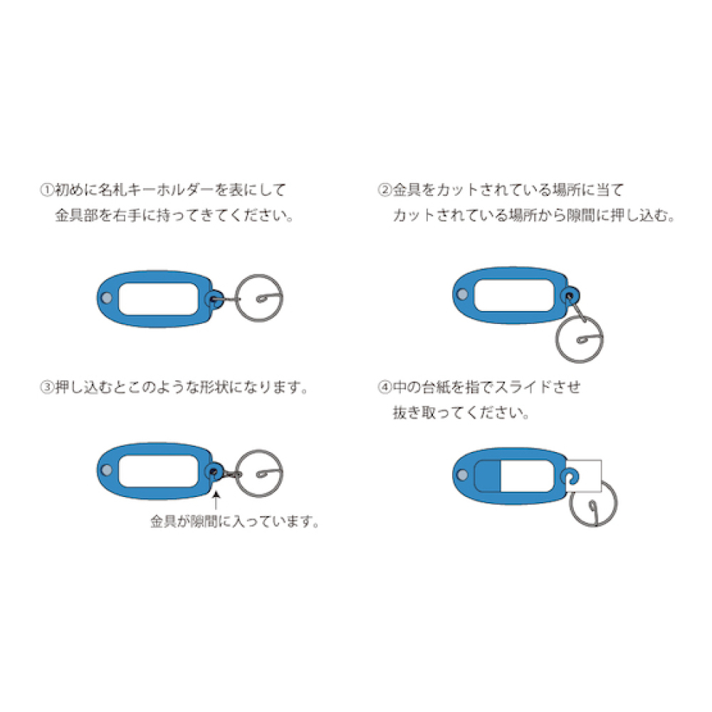 リングの先端が内側に曲がっており、つけ外しに便利です。文字が書けるシート付です。