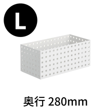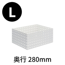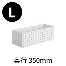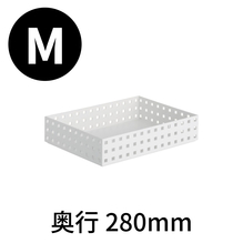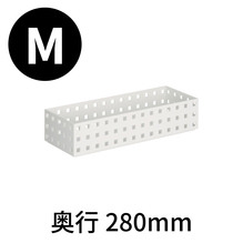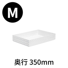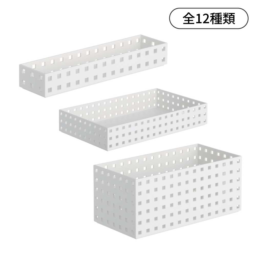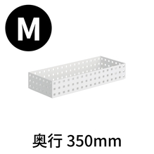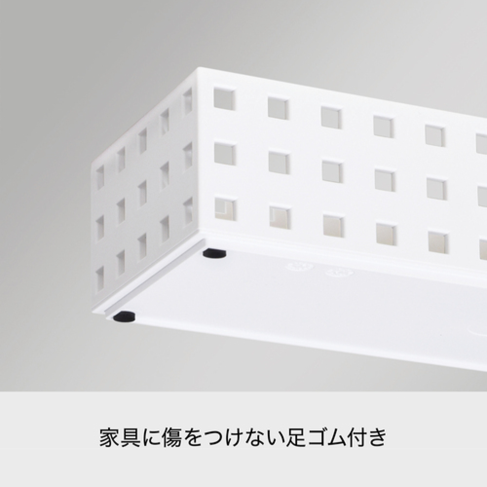 デスクまわりの小物や書類、文具、キャビネット内でケーブル類をひとまとめに。家具に傷をつけない足ゴム付きです。色はホワイトです。