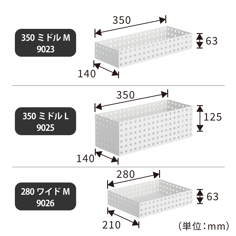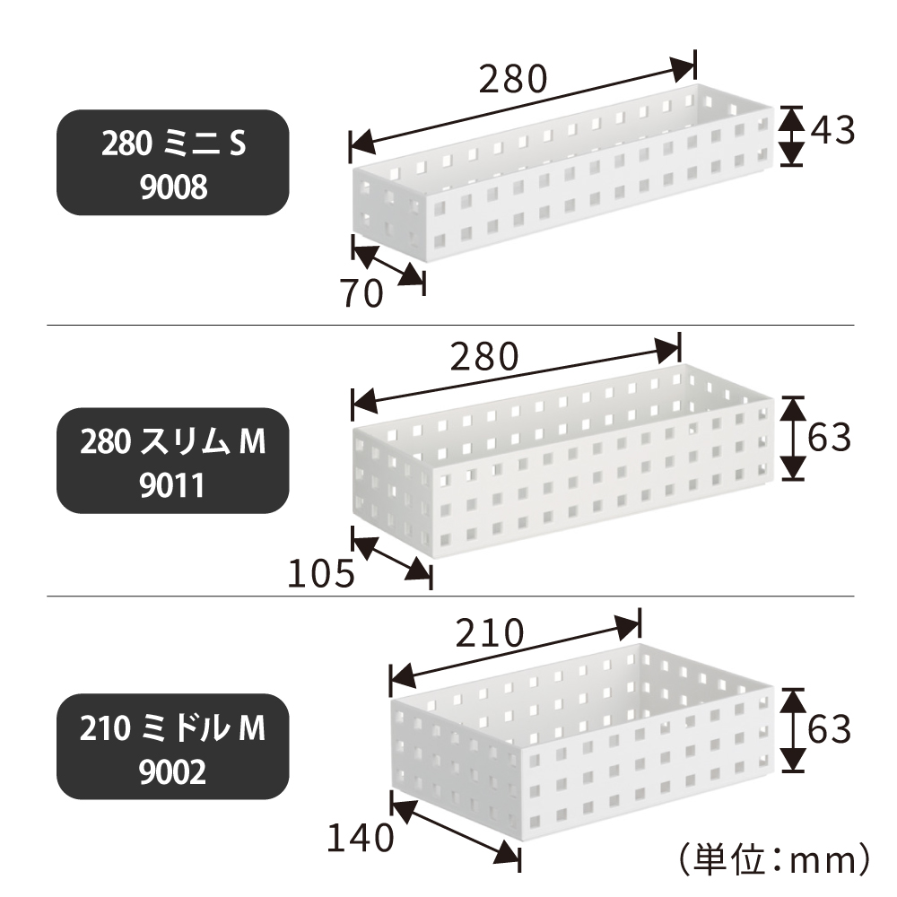 統一されたサイズ設計なので、幅か奥行きが同じアイテムなら、自由な組み合わせやスタッキング可能な収納ケースです。