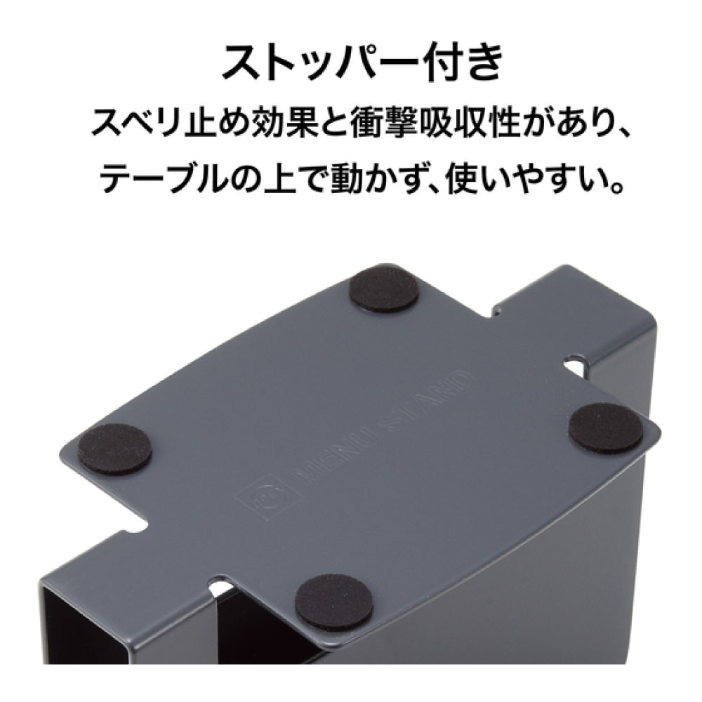 ストッパーが付いています。滑り止め効果と衝撃吸収性があるため、テーブルの上で動かず、使いやすいです。