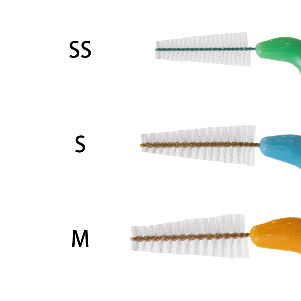 ※ブラシは歯間の前後にのみ動かしてください。※ブラシ部分を折り曲げたり、回転させると毛が抜けるなどの壊れる原因になります。※ブラシは歯間をスムーズに通過するやや細めのサイズを選んでください。※使用後はよく水洗いして乾燥させてください。