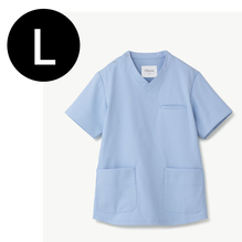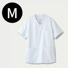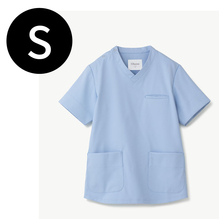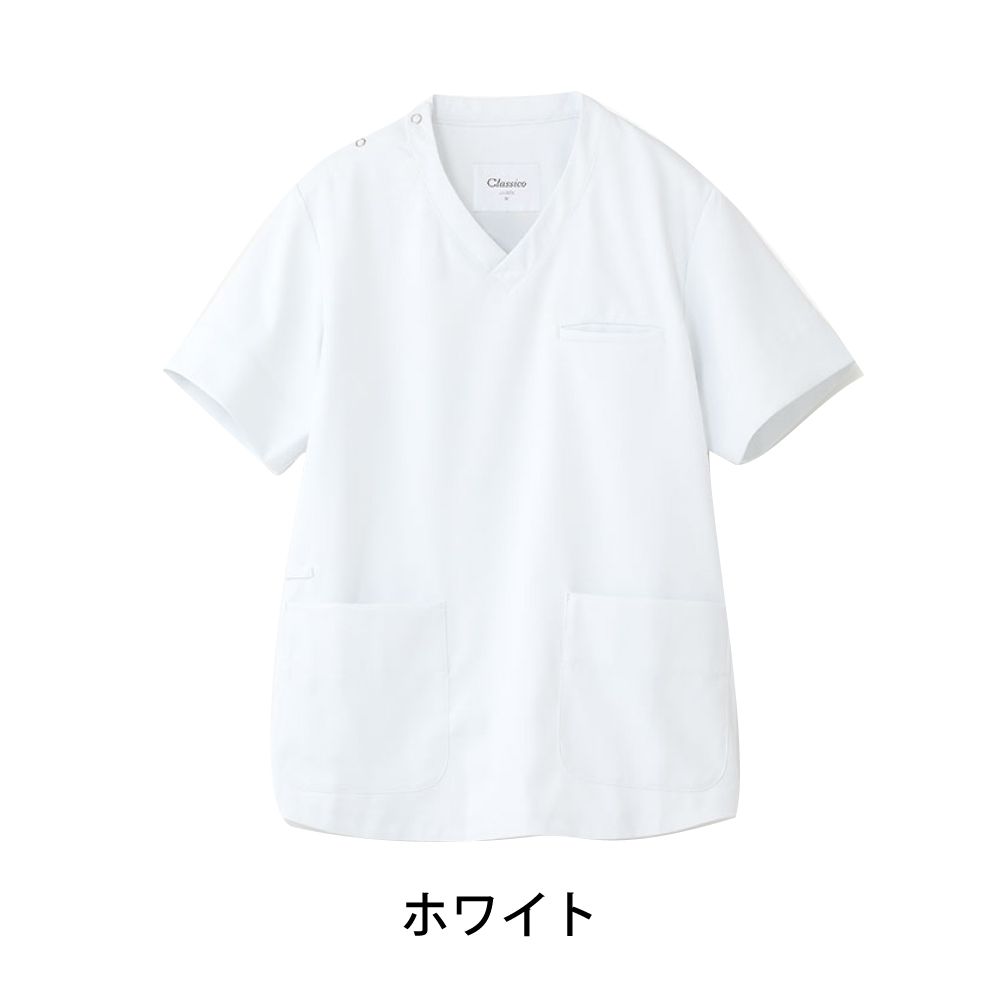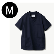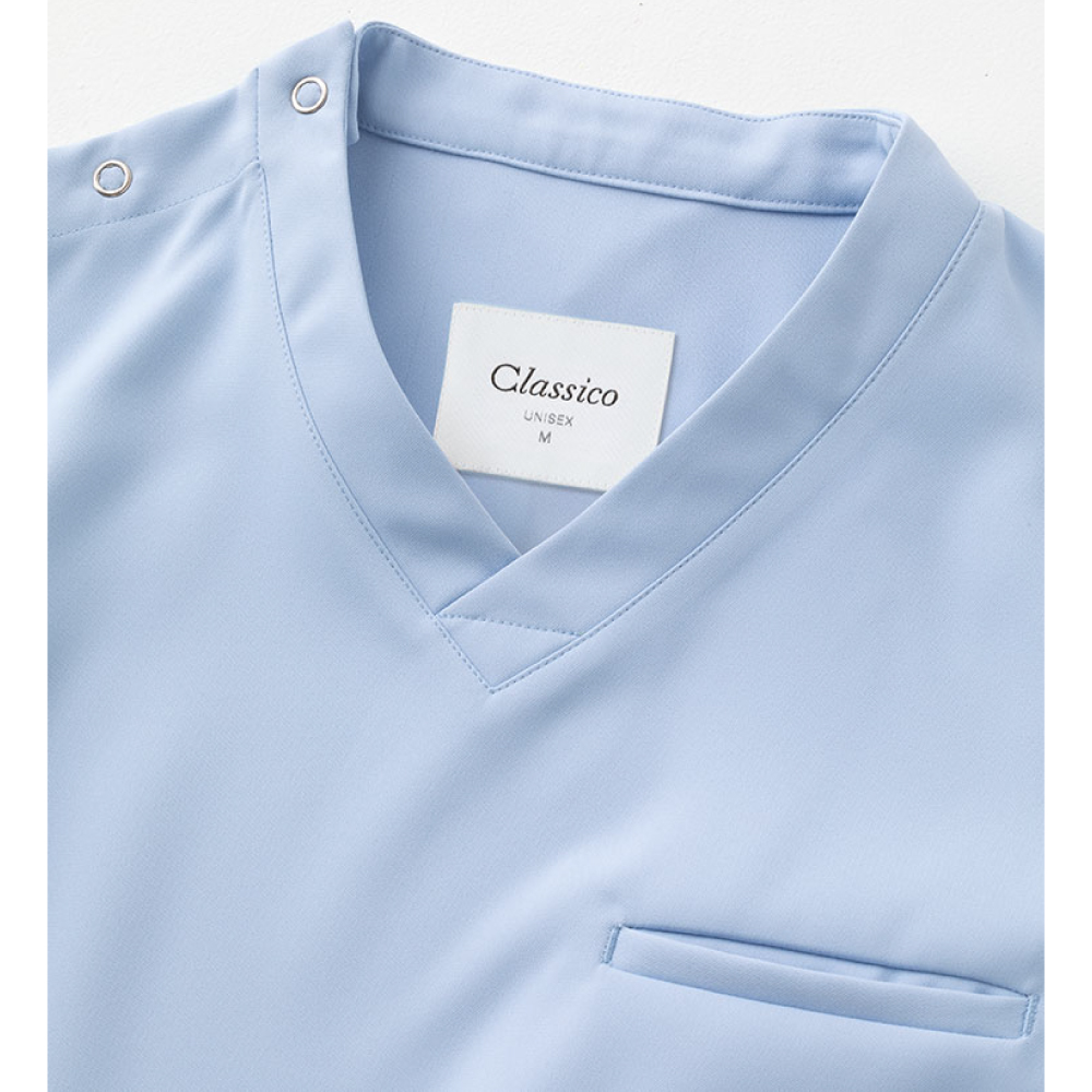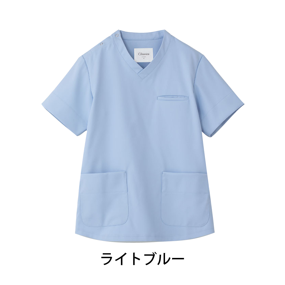 動きやすく、トレンド感のある直線的なシルエットの男女兼用のスクラブです。