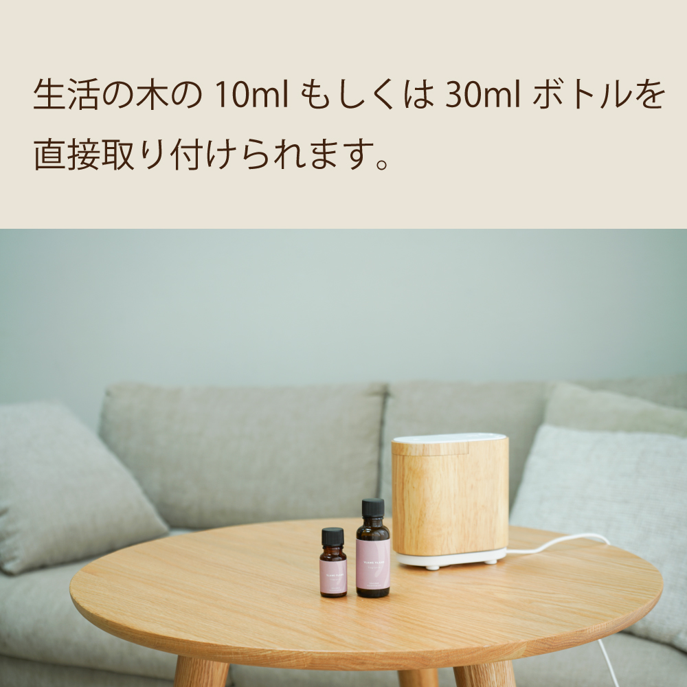 ※ご使用の前に、必ず取扱説明書をお読みください。※精油(エッセンシャルオイル)は別売です。※必ず生活の木エッセンシャルオイルボトル30mlもしくは10mlを使用してください 。※ACアダプタは同梱されておりません。コンセントを使用する場合は、アダプタを別途ご用意ください。※木目には個体差があります。ナチュラルな風合いをお楽しみください。
