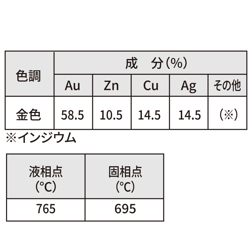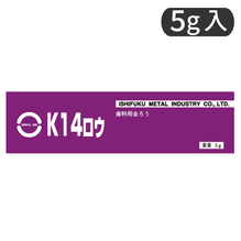 白金加金合金や金合金に加え、メタルセラミック修復用貴金属合金の後ろうにも適したK14の金ろうです。