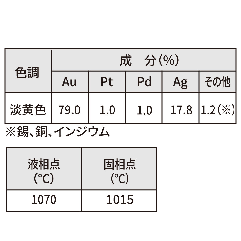 各種金合金、歯科メタルセラミック修復用貴金属に使用する前付け用ろう材。