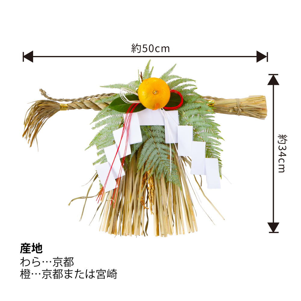 京都のわらを使用した日本製しめ縄です。橙は京都または宮崎産です。