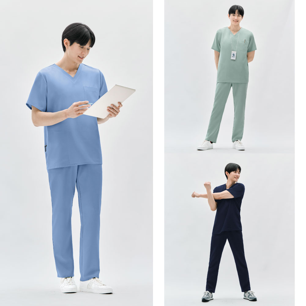 韓国のGoodU社のメディカルユニフォームです。シンプルなメンズパンツです。摩擦に強く、しわになりにくい生地を使用しています。【素材】ポリエステル100%。◇両脇ポケット/ウエスト総ゴム/ウエストひも付。