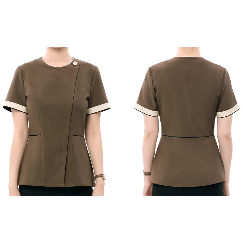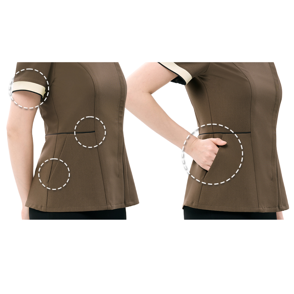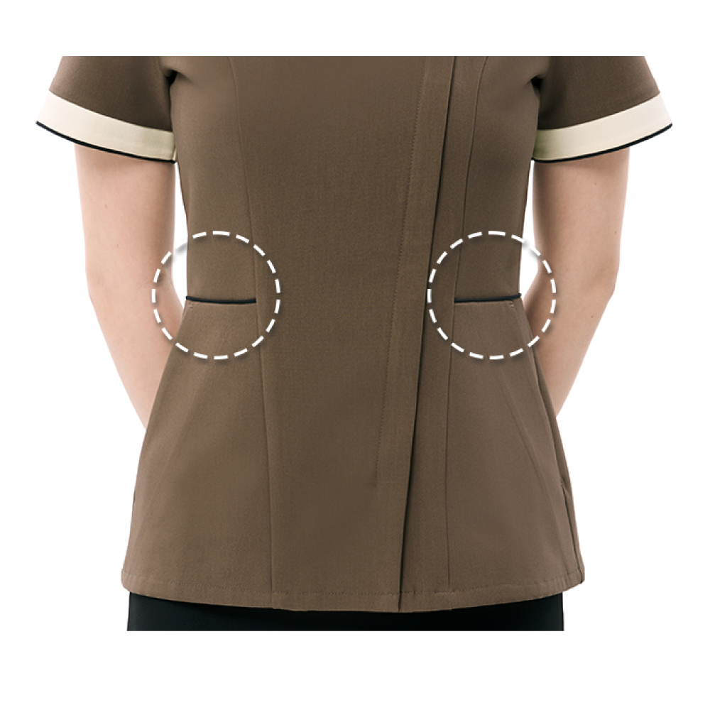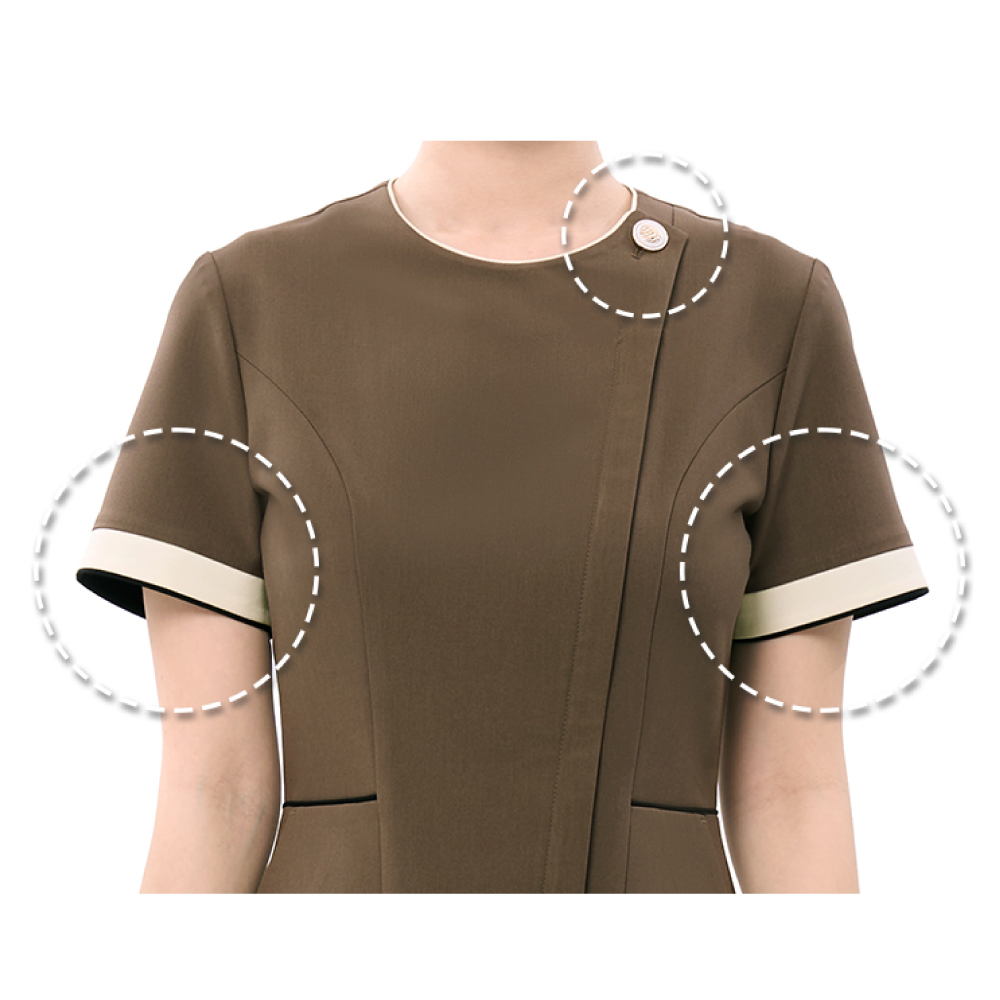 韓国のGoodU社のメディカルユニフォームです。襟元と袖口の配色がポイントの上品なデザインです。シンプルなウエストデザインで、スリムなシルエットを演出。着脱が楽なフロントファスナー付です。【素材】ポリエステル76%、レーヨン18%、ポリウレタン6%。◇サイドポケット。