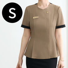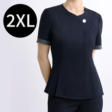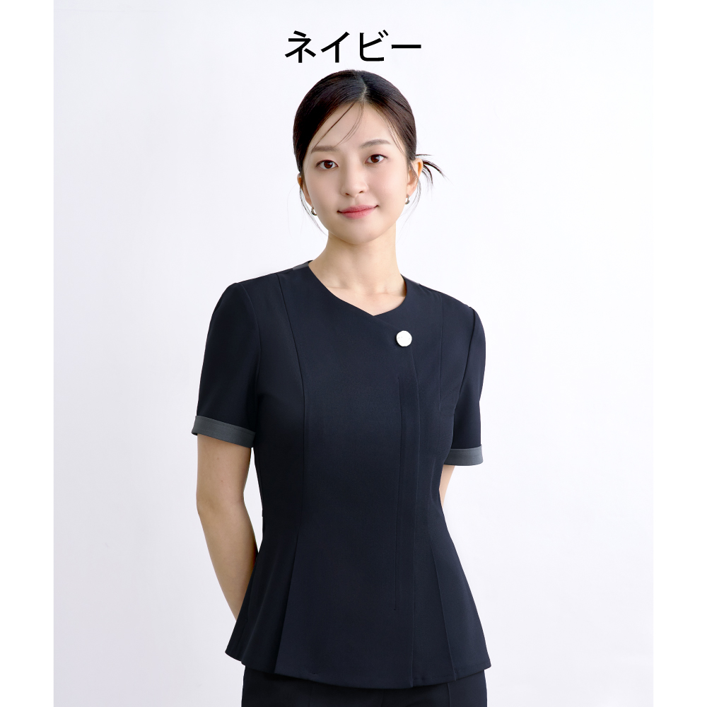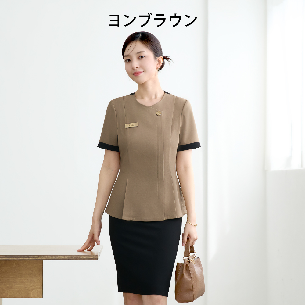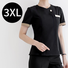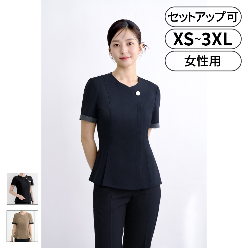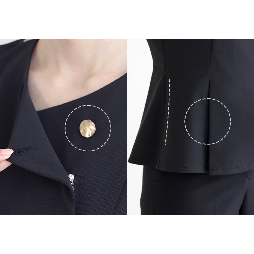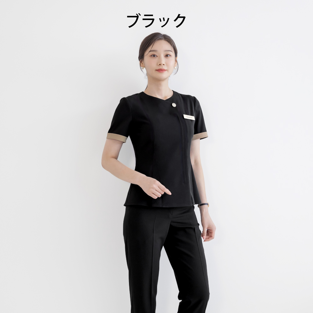 韓国のGoodU社のメディカルユニフォームです。首元と袖口の配色がポイント、ラウンドVネックラインで女性らしいデザインです。フロント部分のプリーツでスリムに見せる効果があります。左右にサイドポケット(シームポケット)付。着脱が楽なフロントファスナー付。【素材】ポリエステル95%、ポリウレタン5%/ (ブラックのみ)ポリエステル96%、ポリウレタン4%。◇両腰サイドポケット。