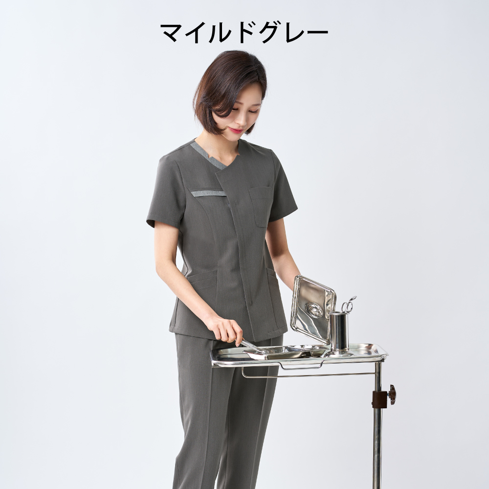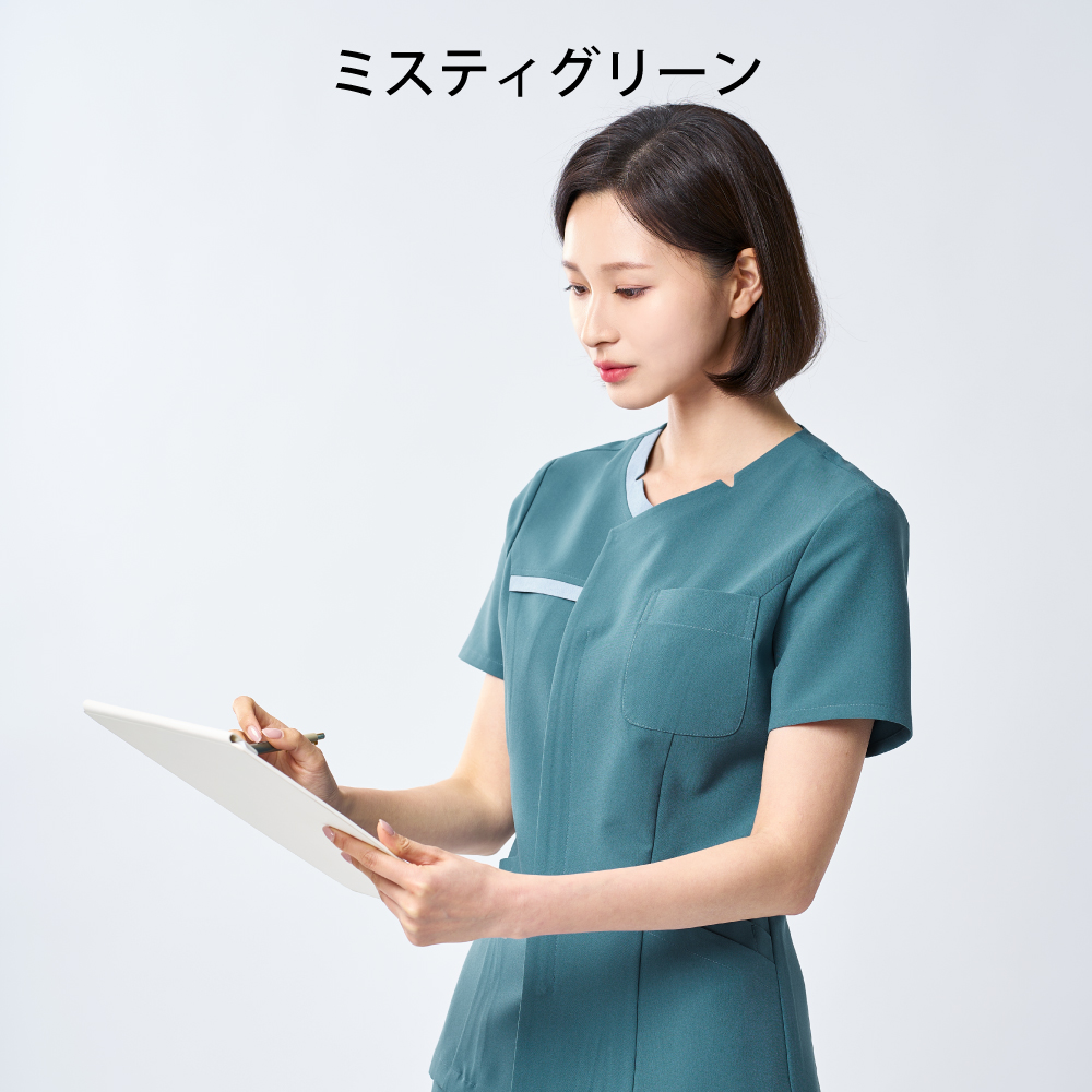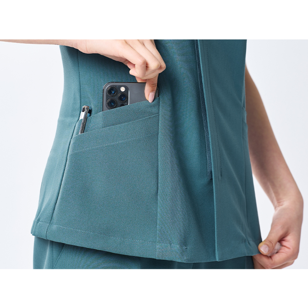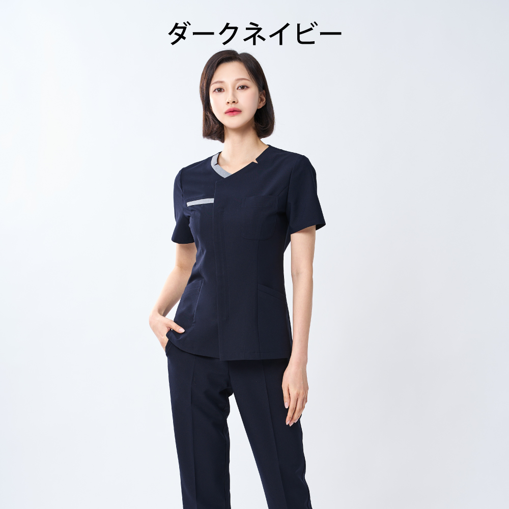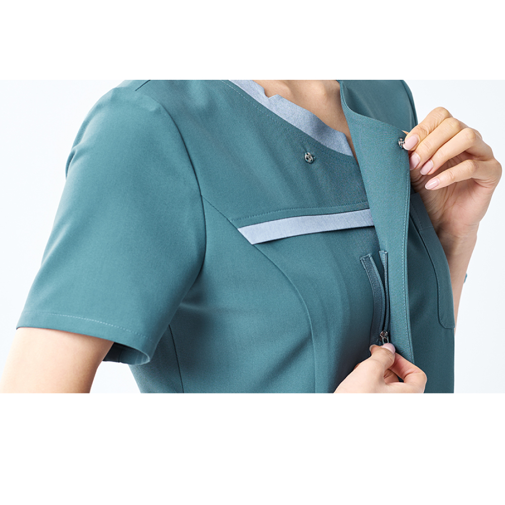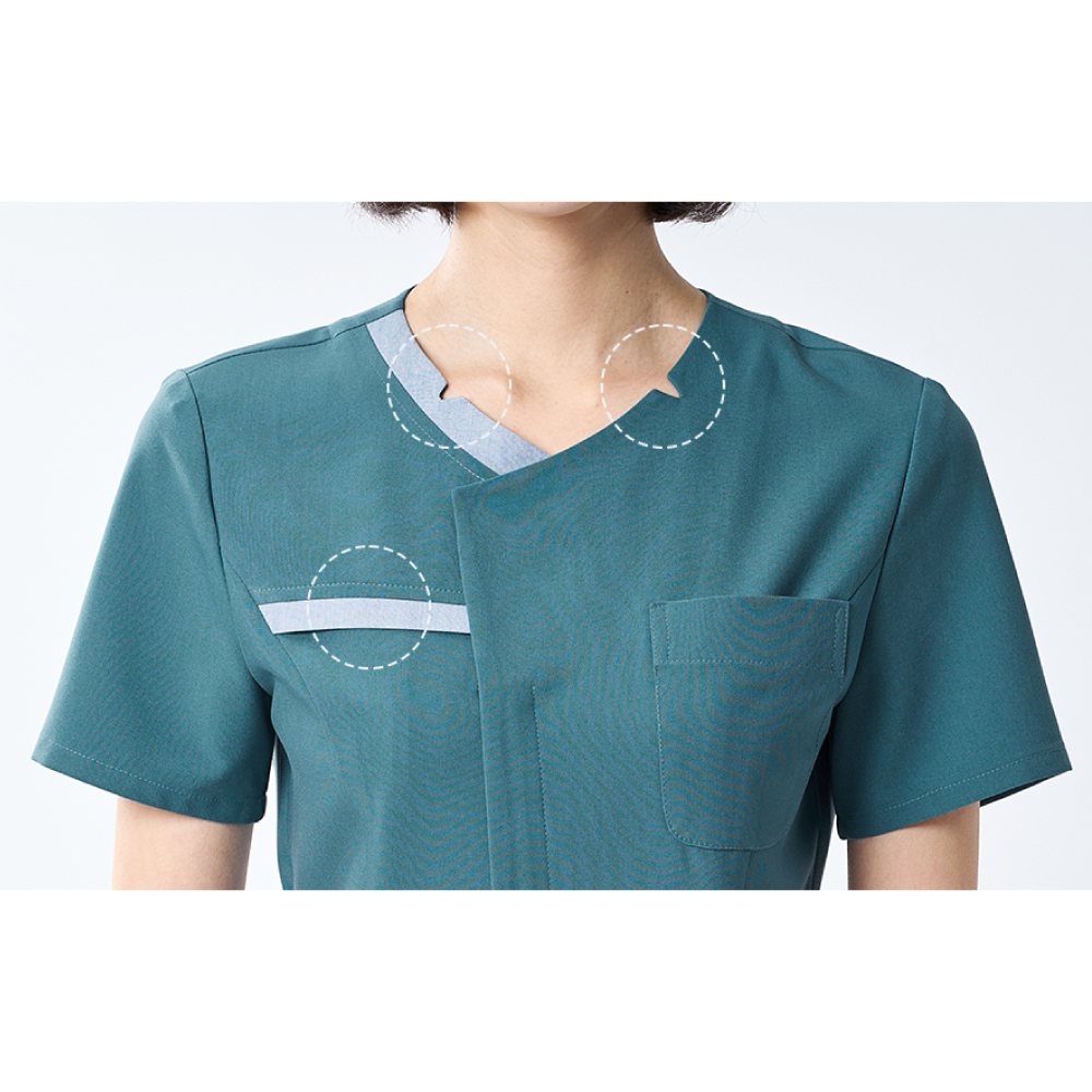 韓国のGoodU社のメディカルユニフォームです。襟元と胸元の配色がポイントのおしゃれなデザインです。着脱が楽なフロントファスナー付です。【素材】ポリエステル76%、レーヨン18%、ポリウレタン6%。◇左胸ポケット/両腰ポケット(二重ポケット・ペン差し付)。