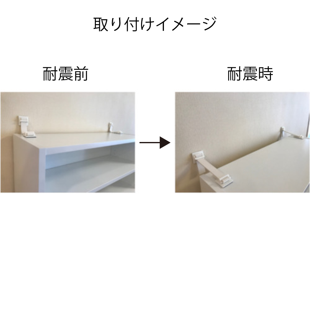 壁や家具にも馴染みやすい色合いで景観を損ないません。ドライバーで回転させることで取り外しが簡単にできます。衝撃吸収で壁に優しいゴムベルトです。家具・冷蔵庫等の転倒を防止する製品です。