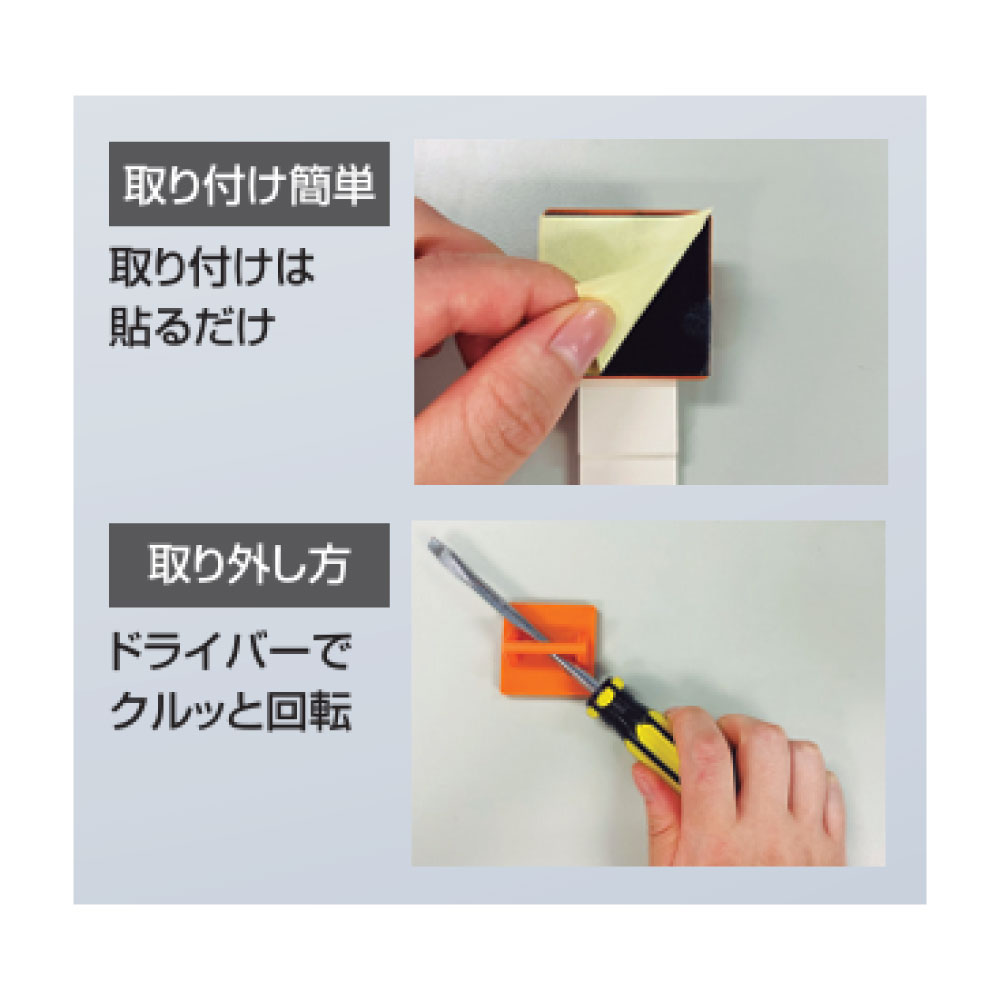 ●接着パッド付フック:ABSアロイ樹脂+アクリル系接着剤●ゴムベルト:ニトリルゴム(NBR)+ポリ塩化ビニル(PVC)ゴム●クサビ:ABSアロイ樹脂●サイズ/幅42×奥行190×高さ20mm●耐震度:震度6強相当●耐荷重:160kg/2本