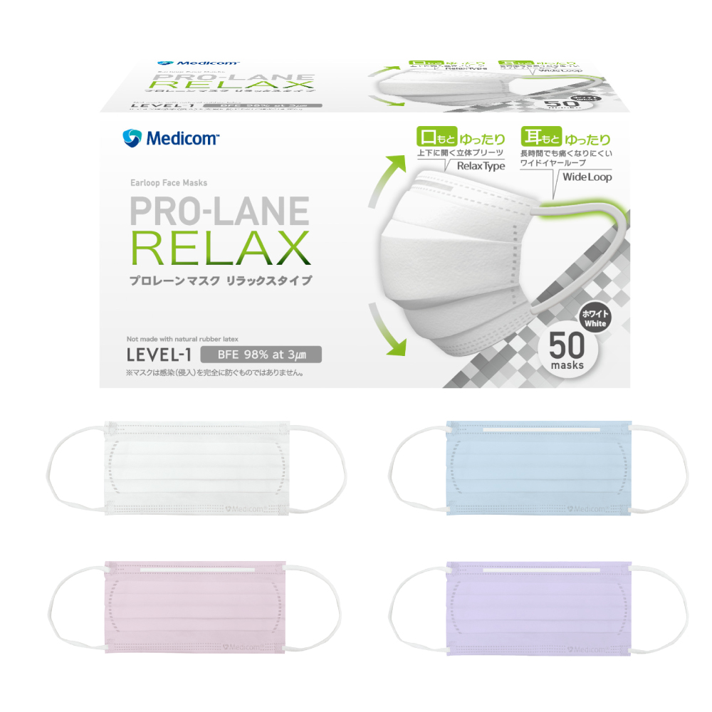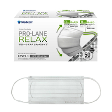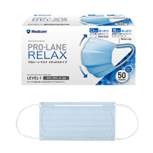 ASTM F 2100 LEVEL1適合のサージカルマスクで、上下に開く立体プリーツ仕様なので口元が快適です。