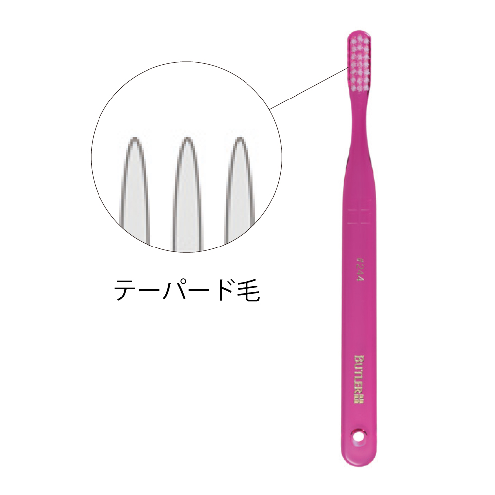 正しいブラッシング指導に適したハブラシ。コンパクトなヘッドで口腔内の操作性がよく臼歯部や舌側面の刷掃に効果的。ペングリップで持ちやすいストレートハンドル。テーパード加工・サテナイズド加工。