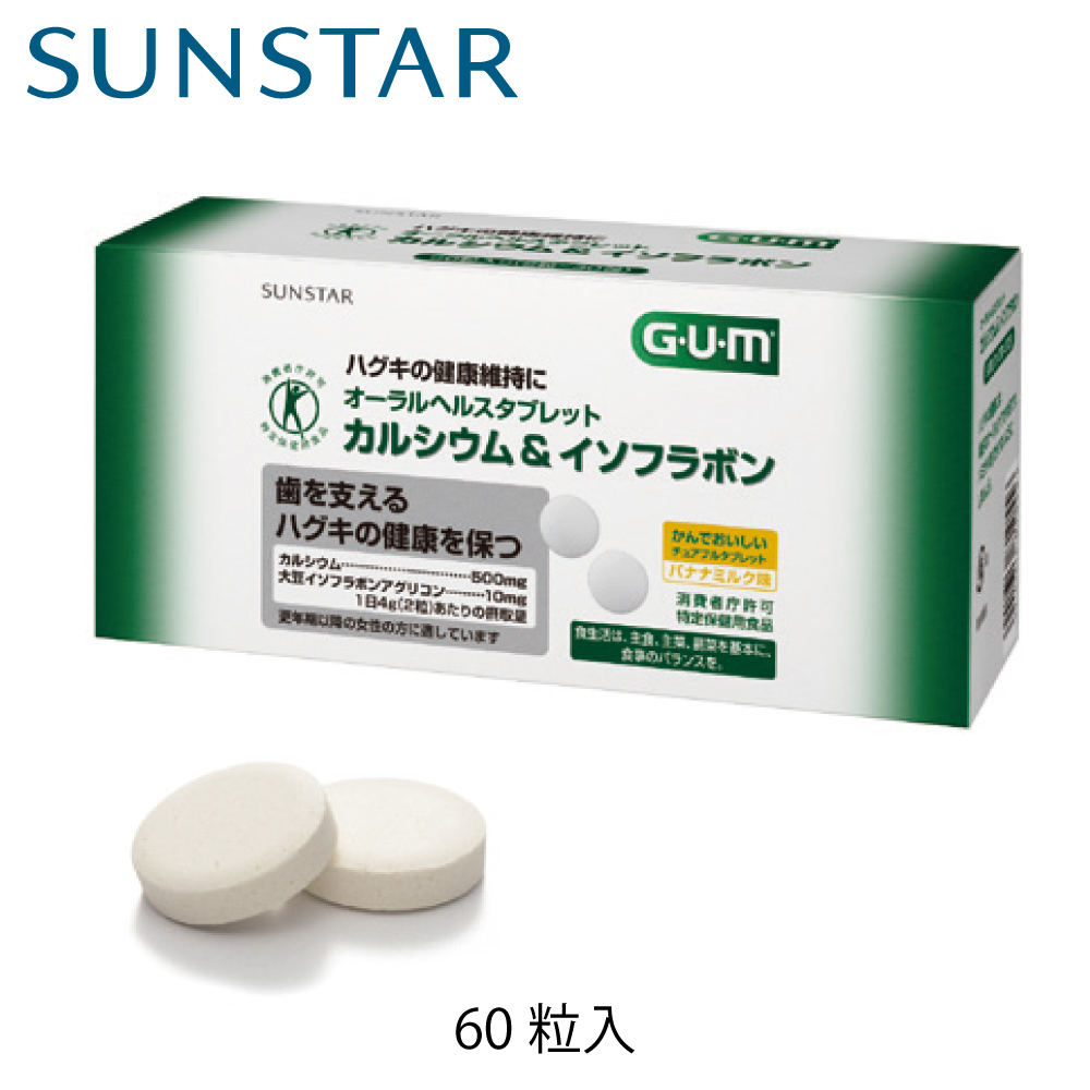 カルシウムの摂取量を増やすこと、低下したエストロゲン作用を補うことが、歯周組織の健康を保つための有効な手段と考えられます。1日2粒、食べておいしいバナナミルク味です。カルシウム500mg、大豆イソフラボンアグリコン10mgが含まれます。