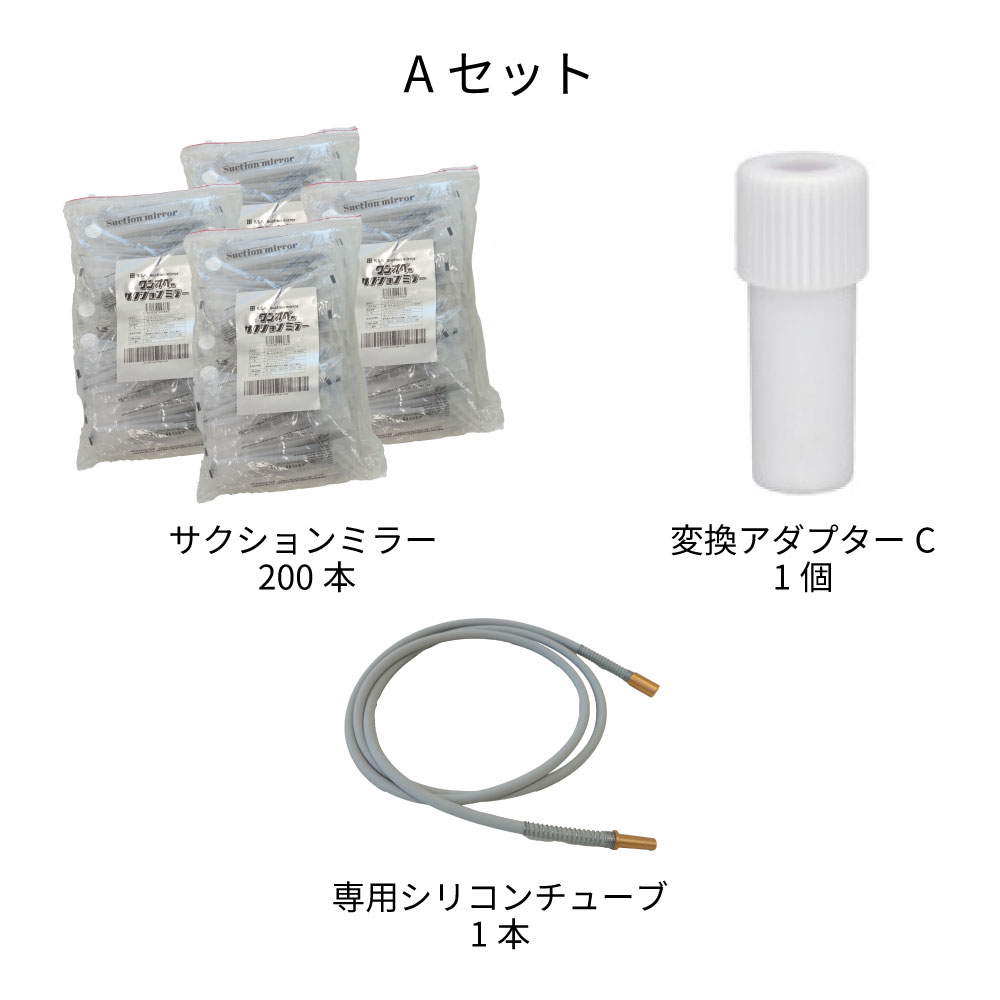 変換アダプターC(41-9939)を使用すれば、バキュームにも接続ができます。個包装なので衛生的。検診にも便利です。ミラー背面にある4つのバキューム孔で、しっかり排唾と除湿が可能です。ガラス製ミラーなので明るく、変形せず像が歪みません。マイクロスコープ下での診療や、衛生士さんのスケーリング時にも便利です。