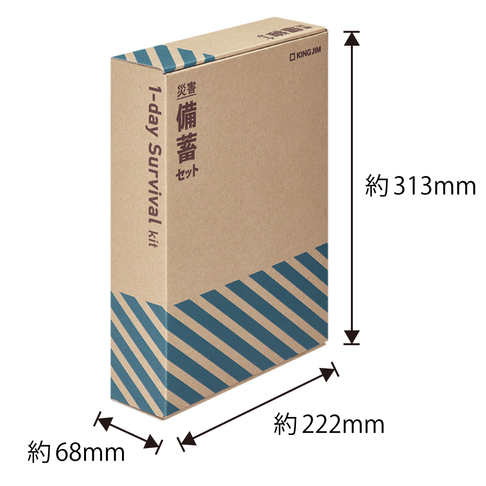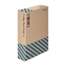【セット内容】保存水(500ml)×2本、ポケットティッシュ×2個、クッキー(3本入)×1袋、ご飯(スプーン付)×2食、非常用簡易トイレ×5個●個装箱寸法/約H313×W68×D222mm●質量/約2060g●※食物アレルギー特定原材料等28品目と貝類不使用●※ハラール認証取得