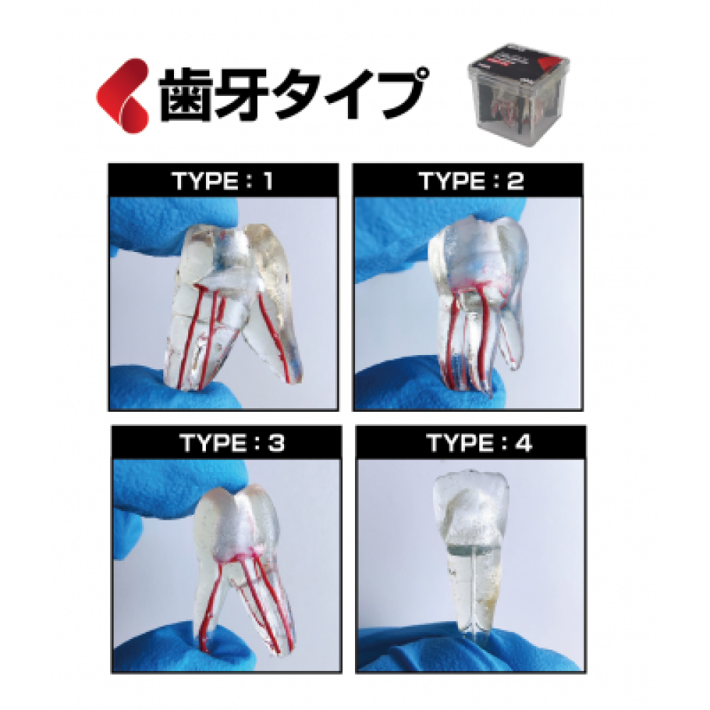 難易度がそれぞれ異なる4種類の模型がセットになっています。3Dプリンターで狭窄根管を再現!
