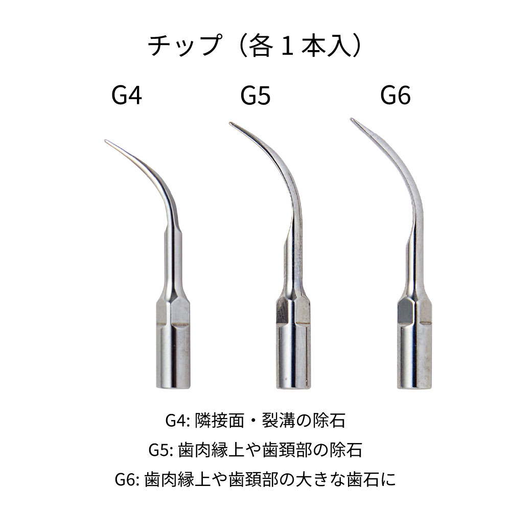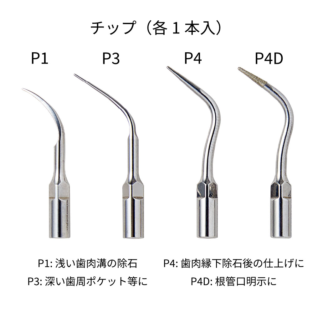 【セット内容】メインユニット、ハンドピース、ハンドピースケーブル、チップ類、エンドファイル、レンチ類、フットスイッチ、電源ケーブル、交換用パッキン、交換用ハンドピースLED●保証期間/1年※一般的名称:歯科用多目的超音波治療器 認証番号:304AGBZX00091000
