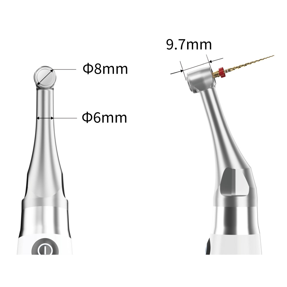直径8mm高さ9.7mmの超コンパクトヘッドなので臼歯部へのアクセスが容易で、開口量が少ない患者さまに対しても使用しやすいです。