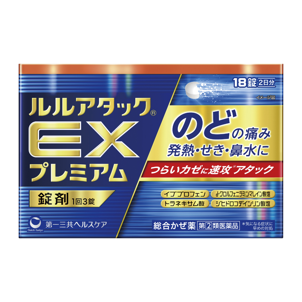 抗炎症成分イブプロフェン600mgとトラネキサム酸750mgをダブル配合(9錠中)。のどの痛み、発熱などにすぐれた効果を発揮します。独自の製剤技術によりイブプロフェンが早く溶け出し、効果を発揮します。抗ヒスタミン成分d-クロルフェニラミンマレイン酸塩が、カゼのアレルギー症状(鼻水・鼻づまり等)をおさえます。ジヒドロコデインリン酸塩とdl-メチルエフェドリン塩酸塩が、つらいせきをしずめます。携帯に便利なPTP包装です。※本品の販売は歯科医院様に限らせていただきます。