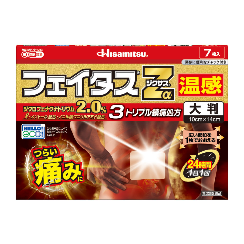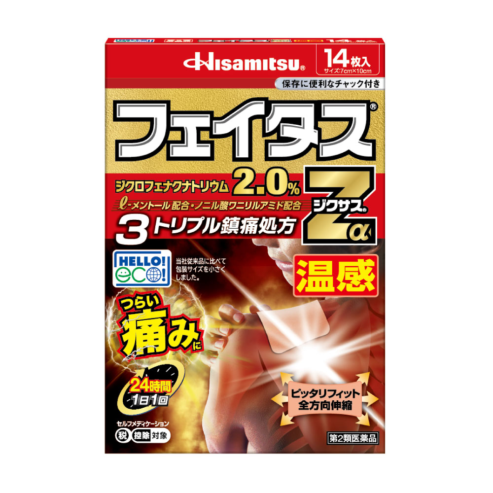 効きめ成分ジクロフェナクナトリウム2.0%が、いつもより激しい痛みに優れた効きめをあらわします。鎮痛消炎成分ジクロフェナクナトリウムをOTC最高濃度2.0%※配合。※ジクロフェナクナトリウム含有貼付剤として(2016年3月末現在)ノニル酸ワニリルアミドのはたらきで、心地よい温感作用!1日1回24時間持続。効きめ成分ジクロフェナクナトリウムが1日中持続します。短辺の伸縮性が向上しフィット感がアップ。