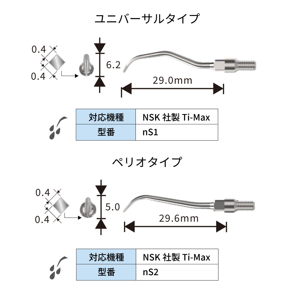 nS1はユニバーサルタイプnS2はペリオタイプnS3はシックルタイプ