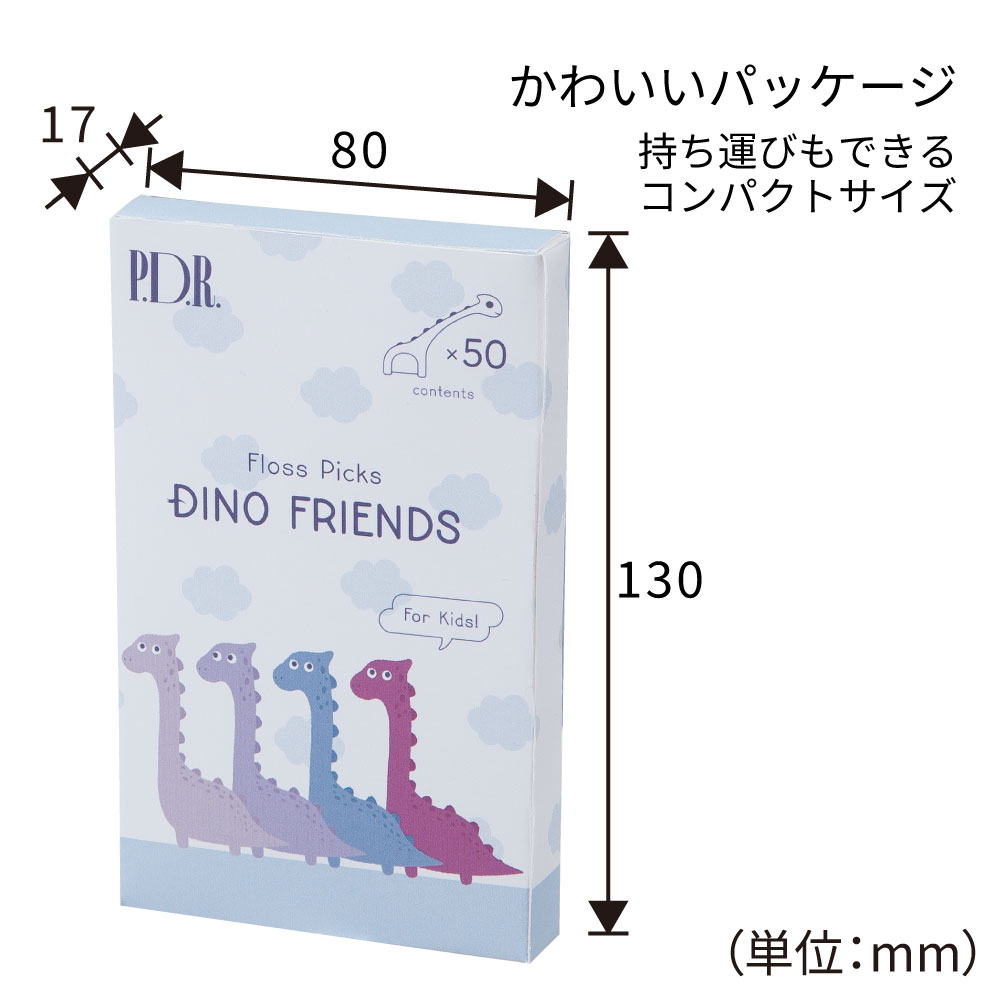 細く長めのハンドルで、大人がお子さまの歯間を掃除するのにおすすめ。4色のおしゃれなくすみカラーアソート。かわいいパッケージは持ち運びもできるコンパクトサイズ。