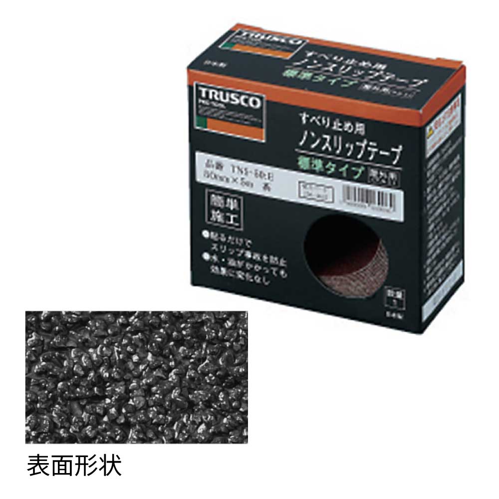 簡単な施工で確実に足もとの滑りを止め、安全度を高くします。水や油がかかっても滑り止め効果が変わらず、縞鋼板などの凹凸面にもよくなじみ、優れた接着力で貼り付け直後から使用が可能です。カーボンニュートラルガス使用により、従来比61%排出量を削減しました(製造時)。