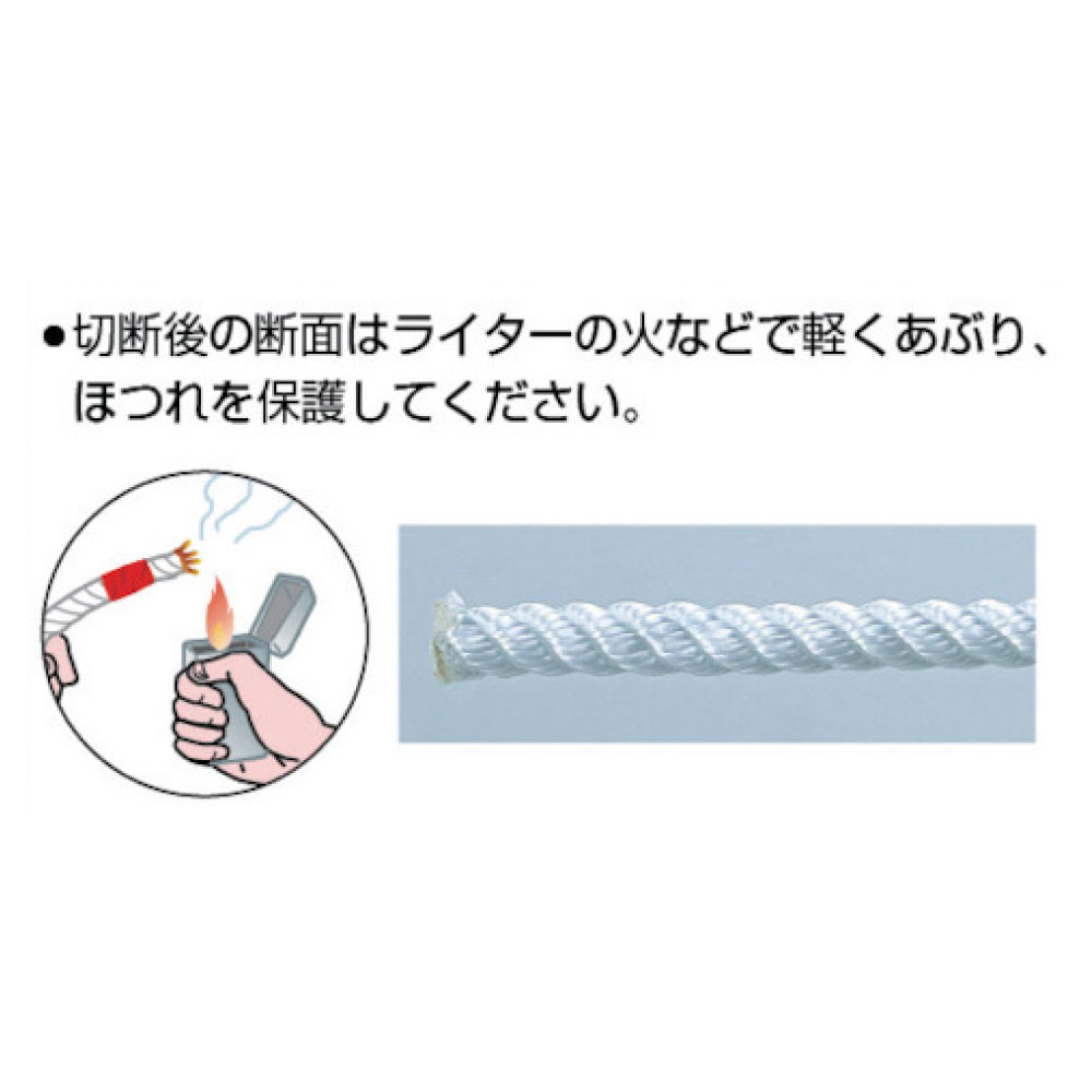 伸びがあるため、衝撃吸収性があります。切断後の端面はライターの火などで軽くあぶり、ほつれを保護してください。