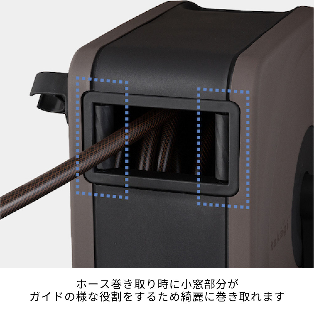 紫外線からホースの劣化を低減するカバータイプのホースリールです。