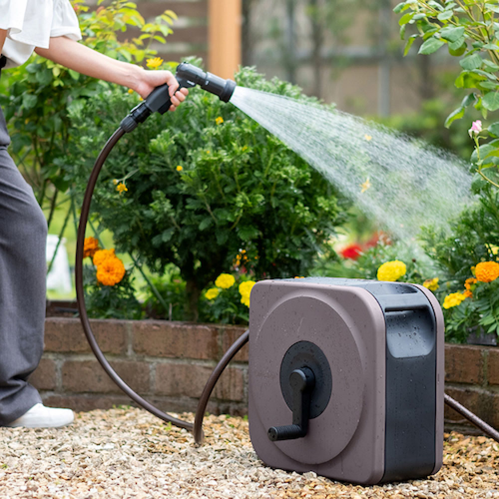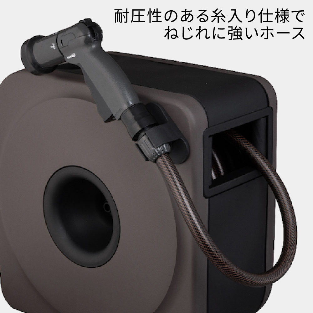 屋外散水用。スタイリッシュでお洒落なカラーのカバー付きホースを使用したい方に適しています。収納スペースが狭くても洗車や清掃をメインで使用したい方におすすめです。お庭などに直置きでホースの劣化が気になる方に重宝します。
