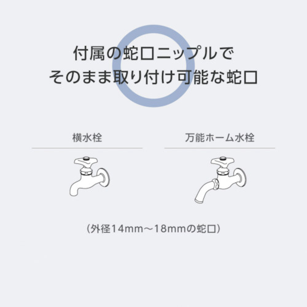 【セット内容】蛇口ニップル×1、サイドホース×1、散水ノズル×1、ノズルホルダー×1、ハンドル×1●日本製●材質/原料樹脂:ポリプロピレン、ポリアセタール、ABS樹脂 ゴム材料:EPDM、NBR 金属材料:ステンレス ホース:塩化ビニール樹脂(糸入)●質量/5.93kg●使用条件/最大使用可能水圧:0.7MPa、耐熱温度:60℃