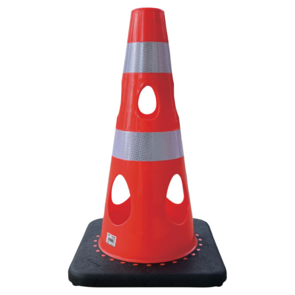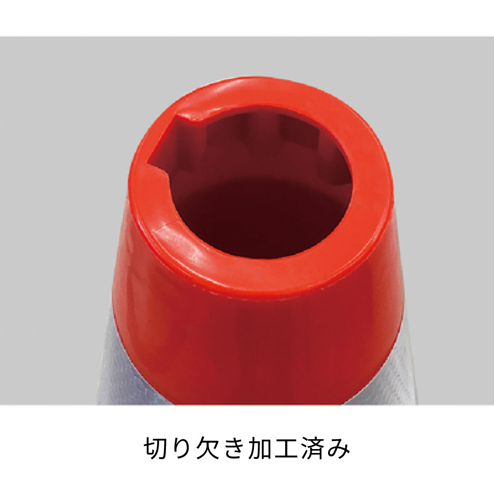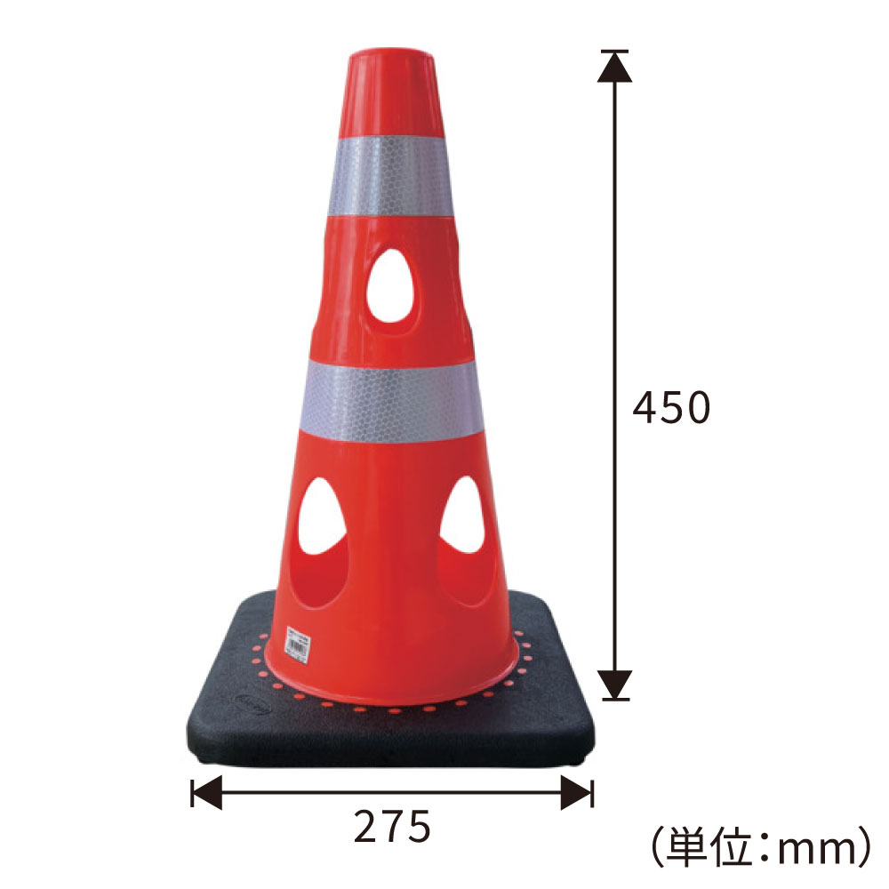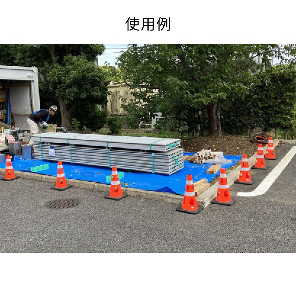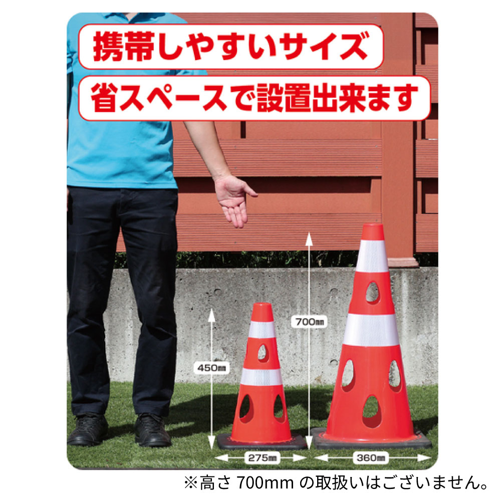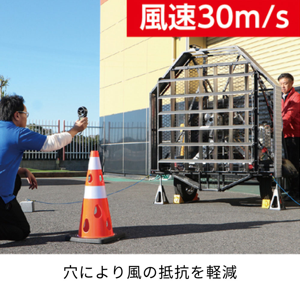風の力を受け流し、倒れにくいタイプです。立入禁止標示や車両、人の誘導に。