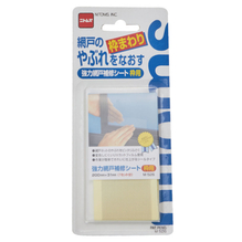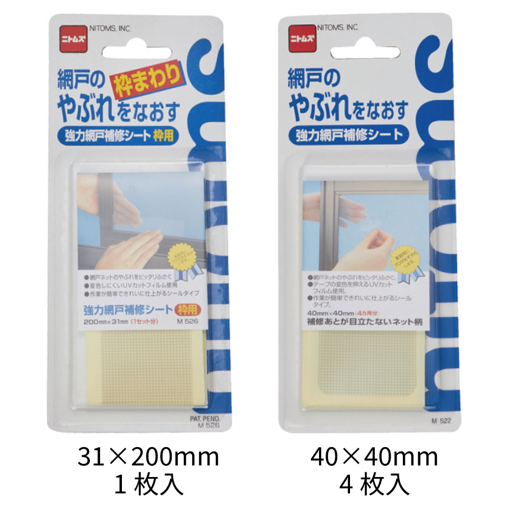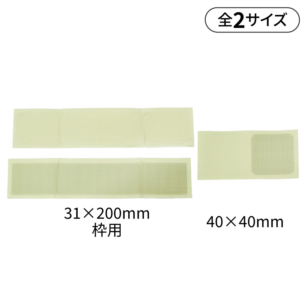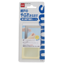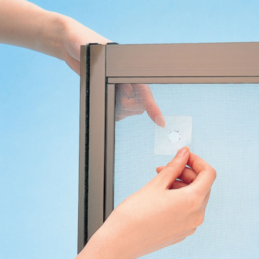 網戸ネットに強力につく粘着剤を使用しています。ネット柄のテープなので補修跡が目立ちません。