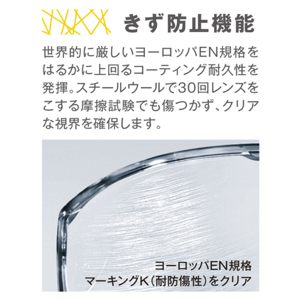 ●ドイツ製●材質/レンズ:ポリカーボネート(PC) フレーム:ポリカーボネート、ポリブチレンテレフタレート混合(PC-PBT)、熱可塑性エラストマー(TPE)、ポリエステル系熱可塑性エラストマー(TPEE)、エチレン酢酸ビニル(EVA)●EN 166、EN 170規格品●色/レンズ:クリア テンプル:アンスラサイト、ブルー●レンズ厚/1.9mm●コーティング/supravision excellence●UVカット/あり●ノーズパッド/あり