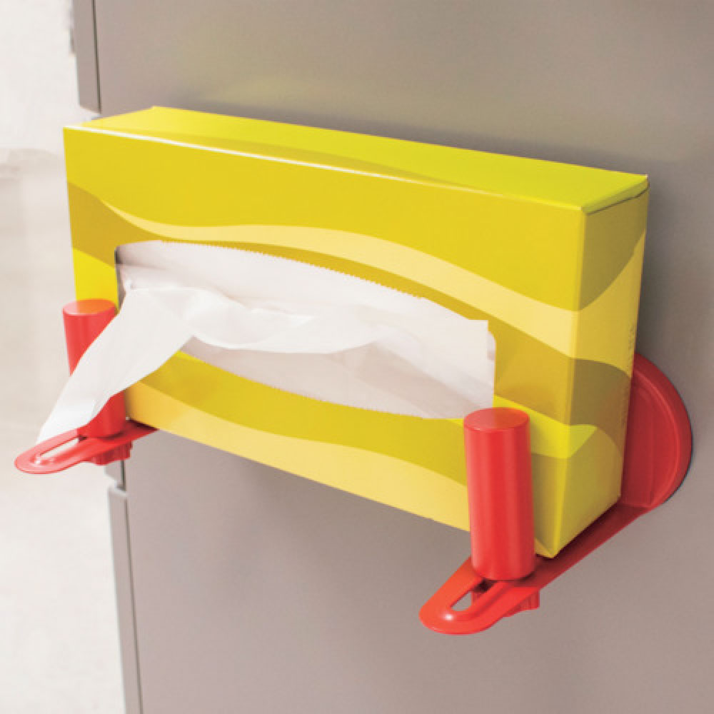 ロール状のペーパーウエスや箱入りの使い捨て手袋を、キャビネットやワゴンの側面に取り付けることができるホルダーです。