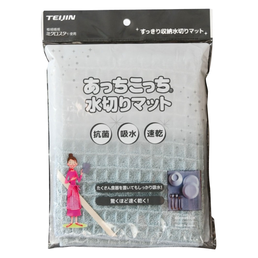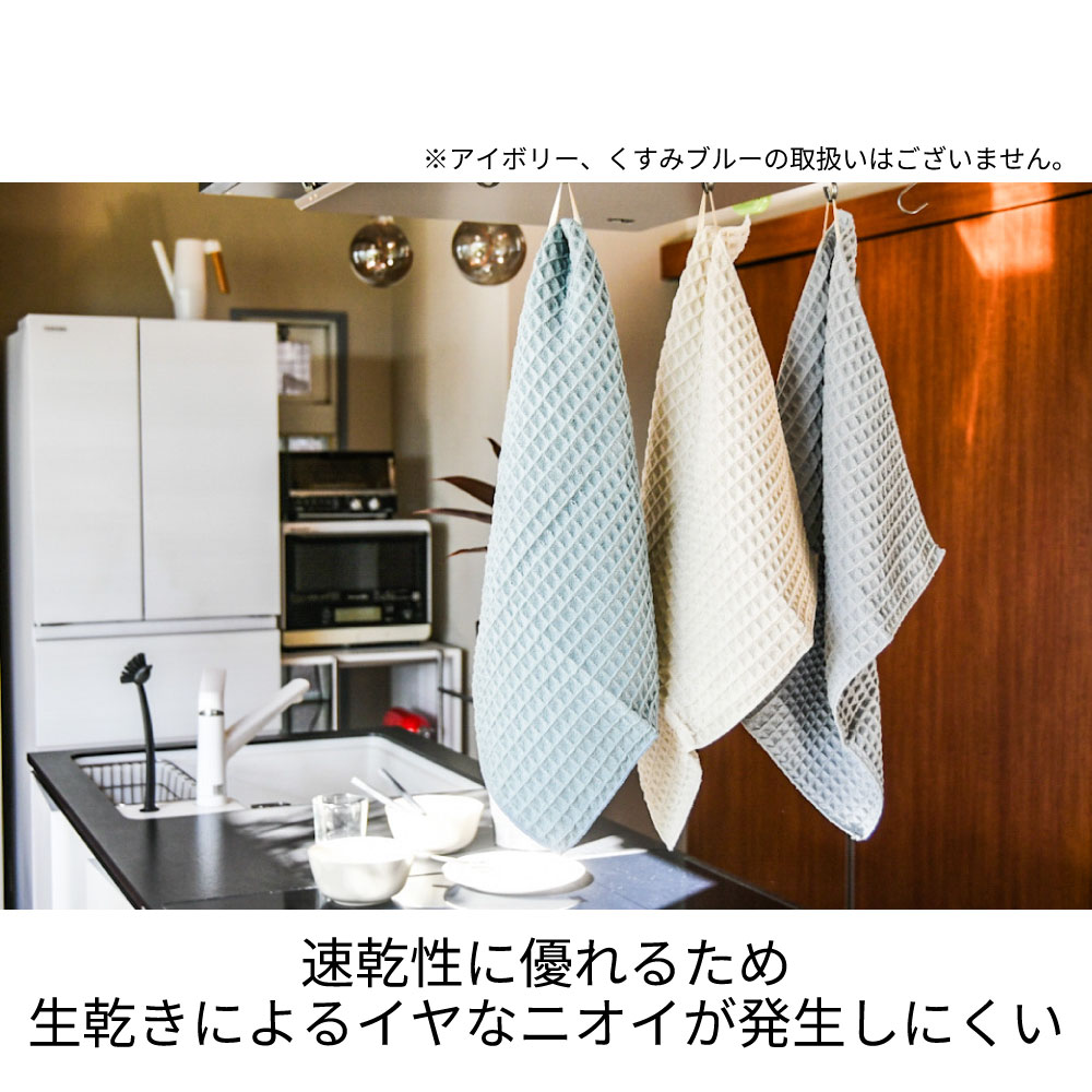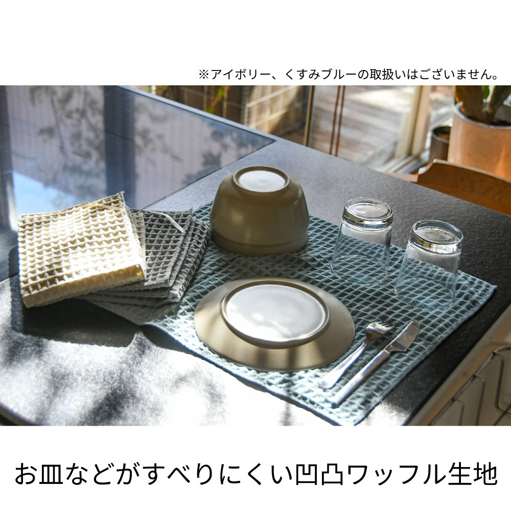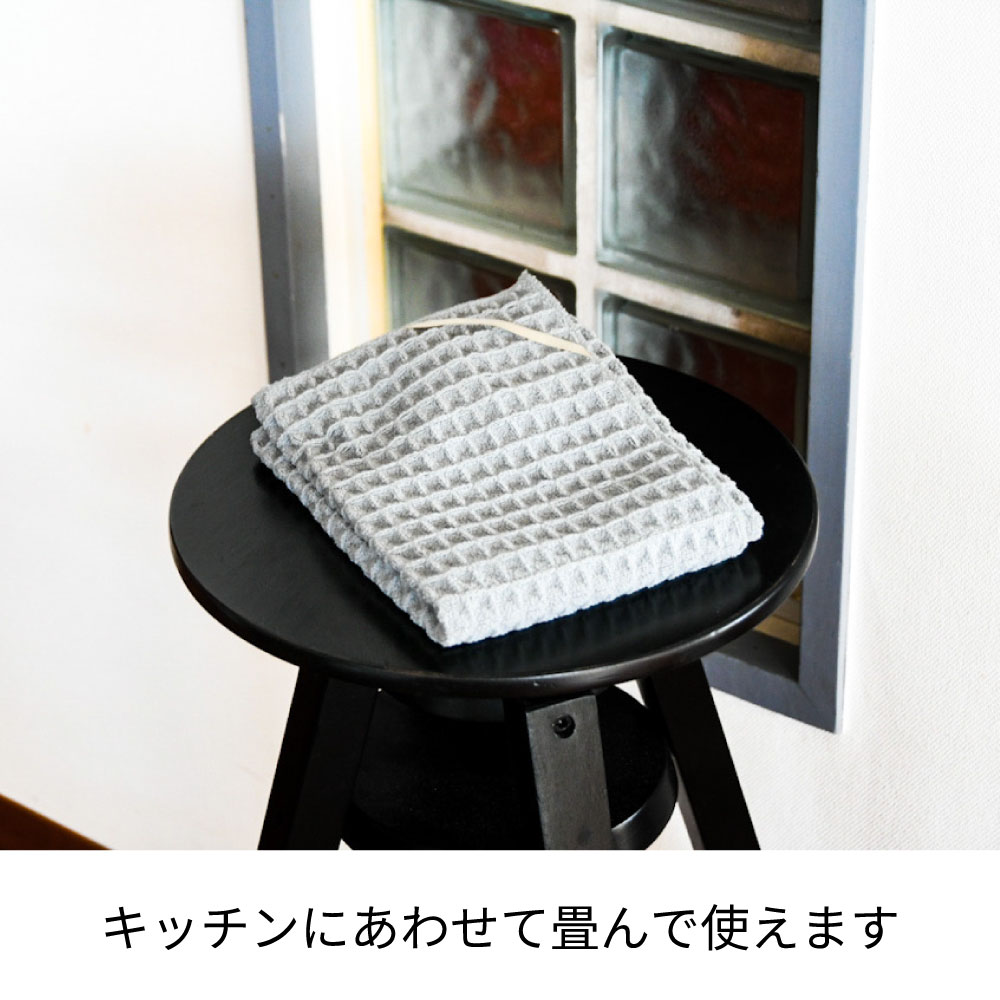 キッチンにあわせて畳んで使えます。抗菌加工でより長く清潔に使えます。お皿などがすべりにくい凹凸ワッフル生地です。