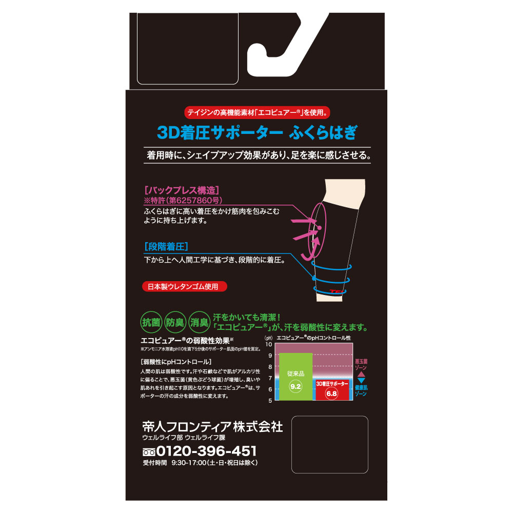 テイジンの高機能素材「エコピュアー」を使用しています。着用時にシェイプアップ効果があり、脚を楽に感じさせます。
