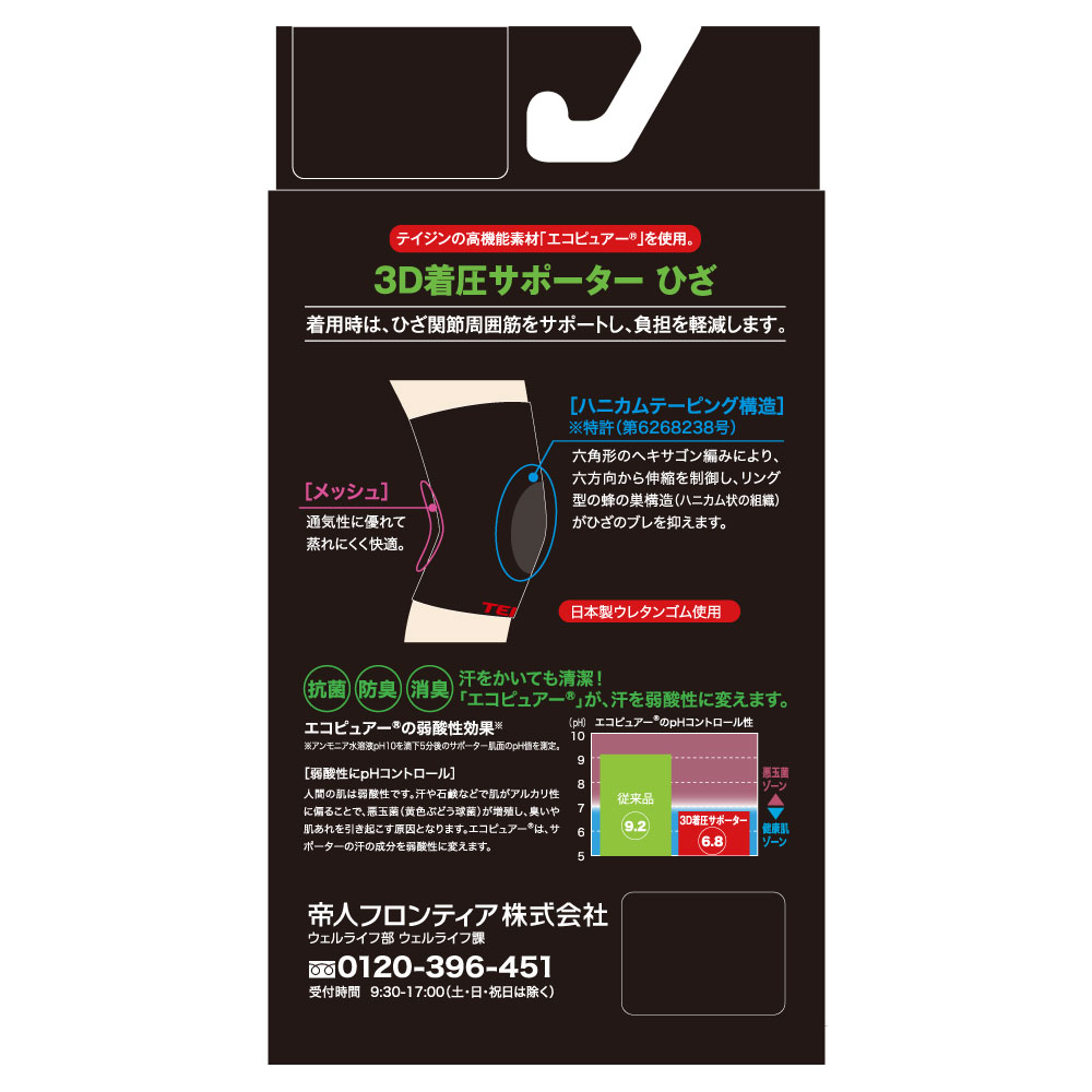 テイジンの高機能素材「エコピュアー」を使用しています。着用時は膝関節周囲筋をサポートし、負担を軽減します。
