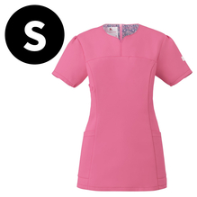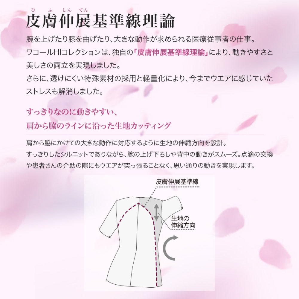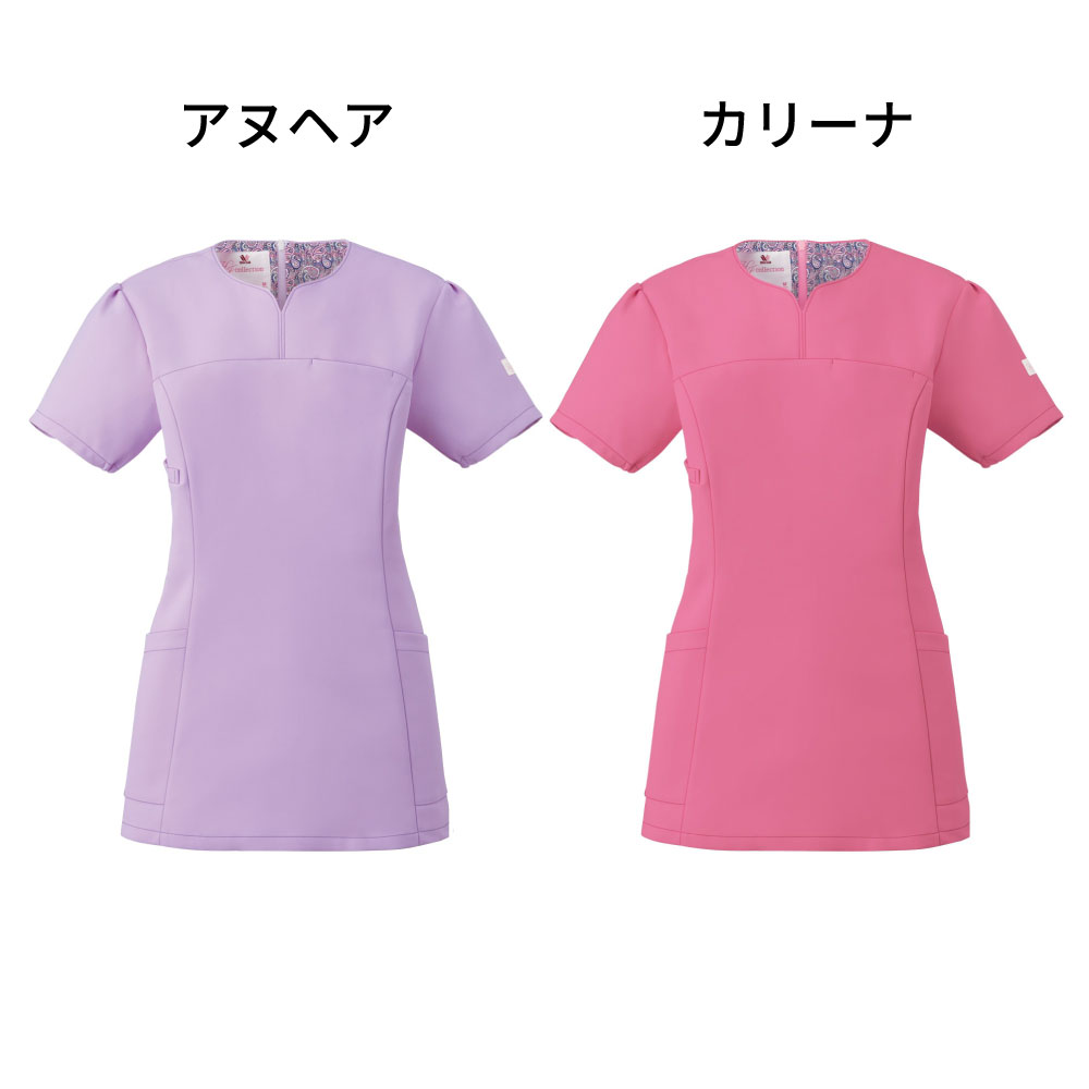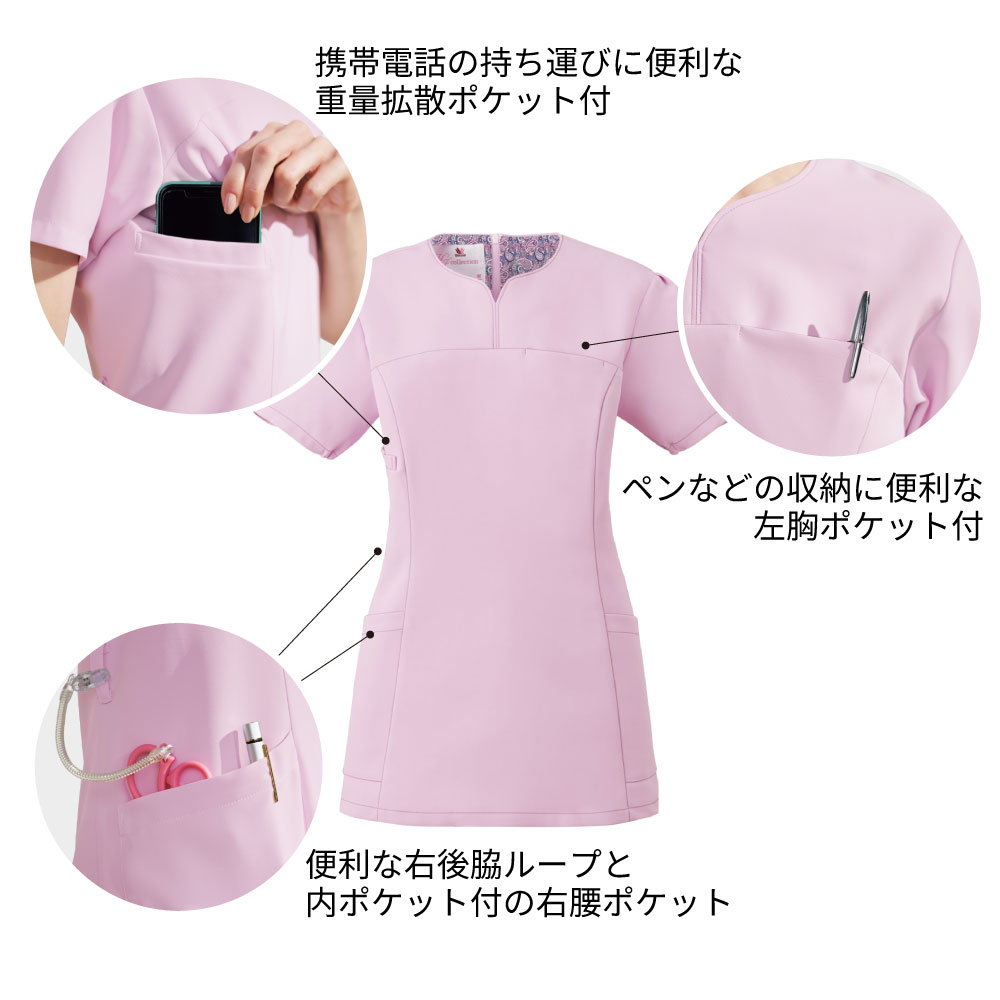ハート型の襟元が女性らしいワコールのレディーススクラブです。スッキリなのに動きやすいウェアです。