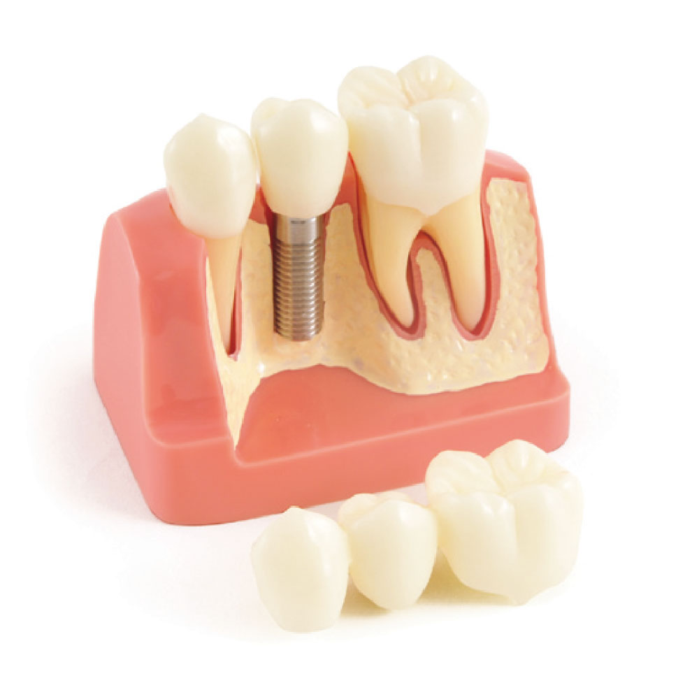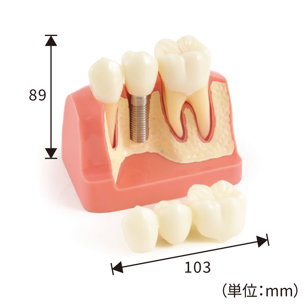 インプラント、小臼歯、臼歯の歯根、セラミッククラウン、ブリッジ等のデモンストレーションモデルです。
