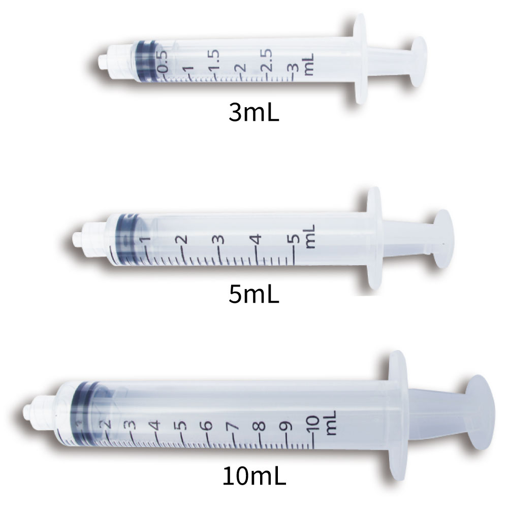 ディスポのシリンジ。ルアーロックタイプのニードルチップが接続できます。